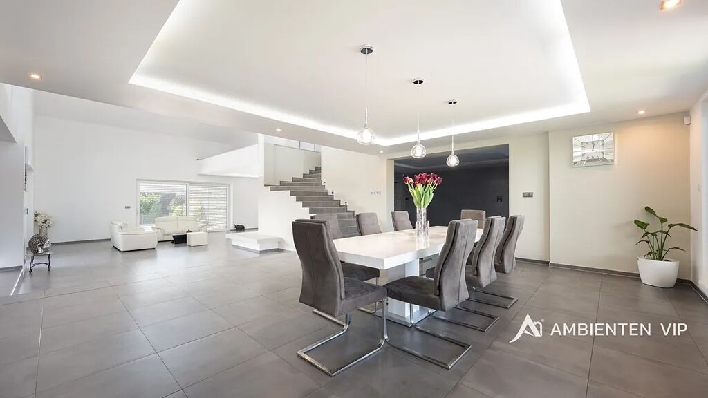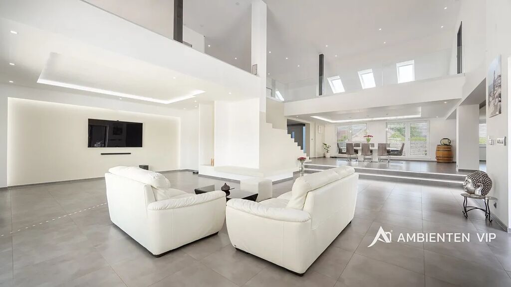 Tato nemovitost představuje mimořádnou příležitost pro klienty hledající prostorné bydlení. Dům je o dispozici 5+kk disponuje nadstandardním obývacím prostorem s jídelnou a kuchyní o velikosti 172 m². Dále se zde nachází čtyři samostatné ložnice, šatny, dvě koupelny a v případě potřeby lze dispozici rozšířit až na 7+kk. Nechybí ani prostorná garáž o velikosti 57 m² a vlastní pozemek umožňující parkování několika desítek vozidel.