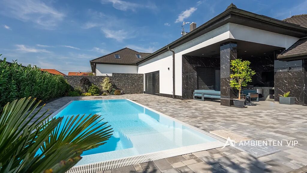 AMBIENTEN VIP exkluzivně nabízí výjimečnou víceúčelovou luxusní vilu v obci Šanov na jižní Moravě s provozovaným ubytováním, rozsáhlým wellness zázemím a moderními technologiemi. Objekt o celkové užitné ploše 974 m² se nachází na pozemku o velikosti 2 035 m².
