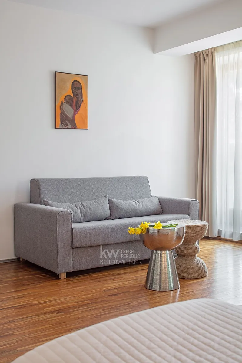 K dispozici od 27.10.2025 - Krásný světlý plně zařízený studiový byt 1kk o ploše 30 m2 v 1.-3. patře budovy s výtahem a recepcí.