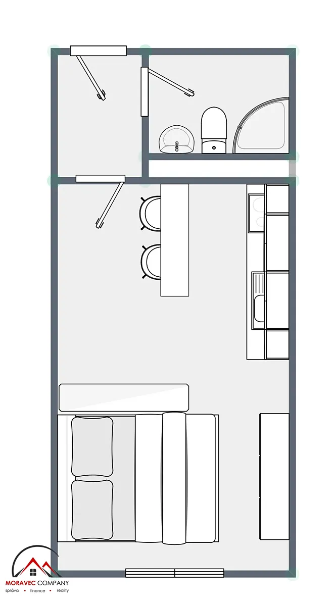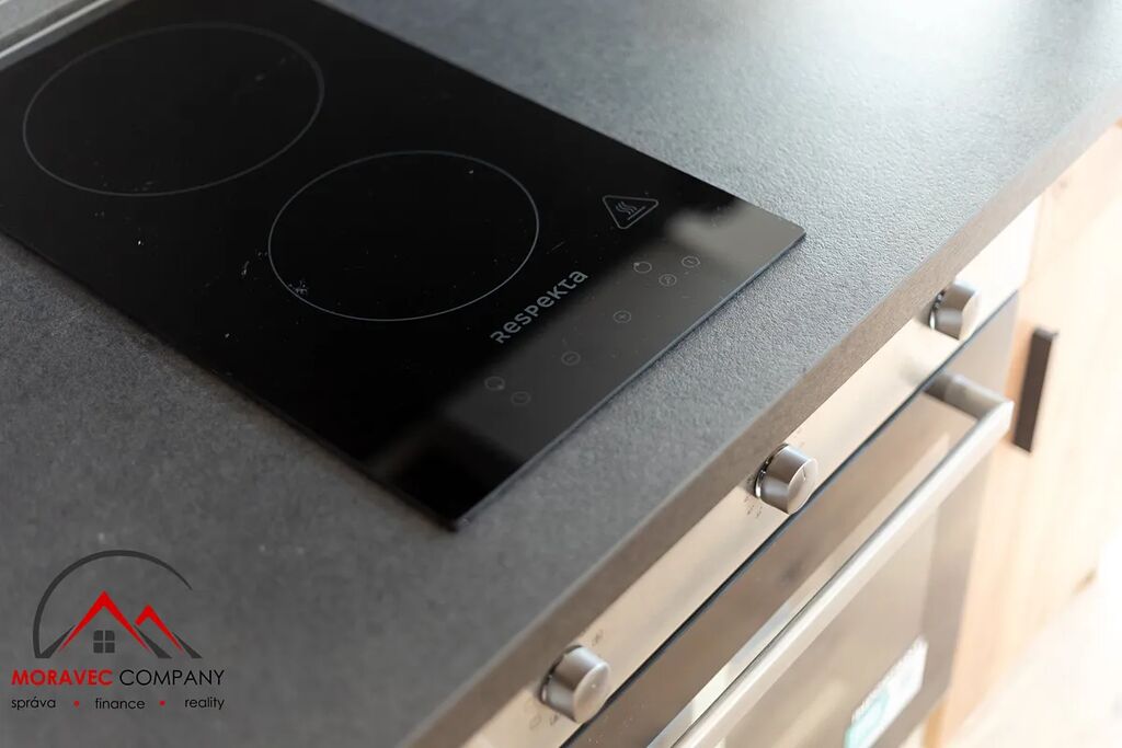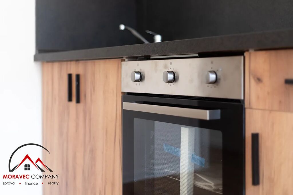 Vybavení bytu zahrnuje kuchyň s elektrickou troubou, indukční varnou deskou, digestoří a varnou konvicí. Majitel může dále v případě zájmu doplnit vybavení bytu o pračku a lednici. Koupelna je vybavena sprchovým koutem a WC.