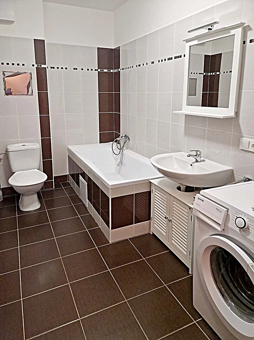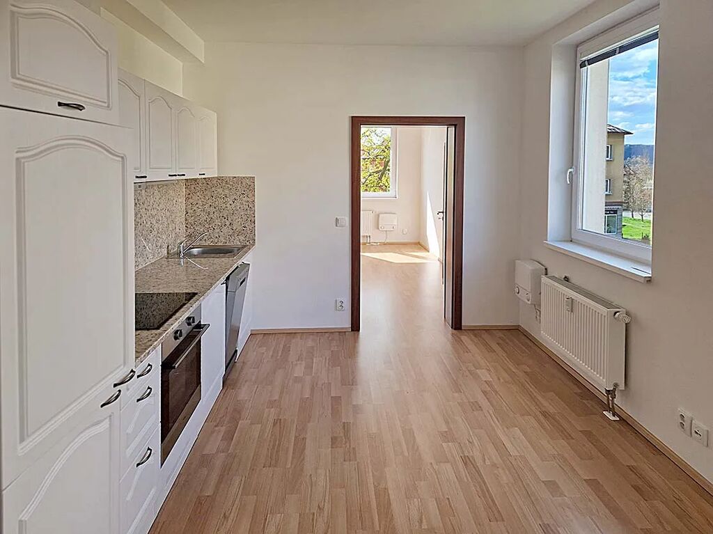 Nabídka pronájmu bytu 1+1 (39,96 m2) + balkón (1,5 m2) + komora/sklep (1,76 m2), který se nachází v 1.patře cihlové novostavby bytového domu se společnou zahradou v Praze 4 - Komořany, ul. Krupná. Byt je vybaven: kuchyňskou linkou se zabudovanými spotřebiči (el. indukční varnou deskou, el. troubou, myčkou, chladničkou s mrazákem), digestoří, automatickou pračkou v koupelně a věšákovou stěnou s botníkem v předsíni. Byt disponuje kuchyní (15,41 m2) se vstupem na balkón, pokojem (15 m2), předsíní (4,43 m2) a koupelnou s vanou + WC (5,12 m2). Na podlaze je položena dlažba v kombinaci s plovoucí podlahou, okna jsou plastová, vybavena žaluziemi (orientace S,V,Z-str.), v pokoji a kuchyni je instalována rekuperační jednotka a datové rozvody pro příjem kabelové TV a i-netu. Komora (sklep) je umístěna na patře - vedle bytu, oplocená zahrada je společná pro všechny uživatele domu. V domě si lze pronajmout kryté parkovací stání, umístěné v suterénu domu. V blízkosti domu se nachází BUS zastávka "Na Šabatce", vlak, stezka pro kolo a in-line brusle vedoucí podél vltavského břehu. Jedná se o kvalitní bydlení v blízkosti přírody v lokalitě autem nepříliš vzdálené od centra města, BUSem s přímým spojením např. do Modřan (5min. jízdy). Byt bude volný od 3.11.2025 a je vhodný pro 1-2 osoby, nekouřící v bytě a bez domácích mazlíčků. Společně s nájemným 16.000,-Kč platíte měsíčně popl. ve výši 3.000,-Kč pro 1 osobu (+cca 600,-Kč za druhou osobu) + elektřina (převod). Vratná kauce je ve výši 1 nájmu vč. poplatků a provize ve výši 1 nájmu. V případě zájmu neváhejte zavolat či napsat, ráda Vás osobně uvítám na prohlídce bytu.
