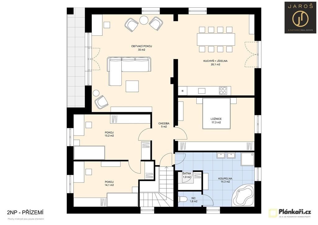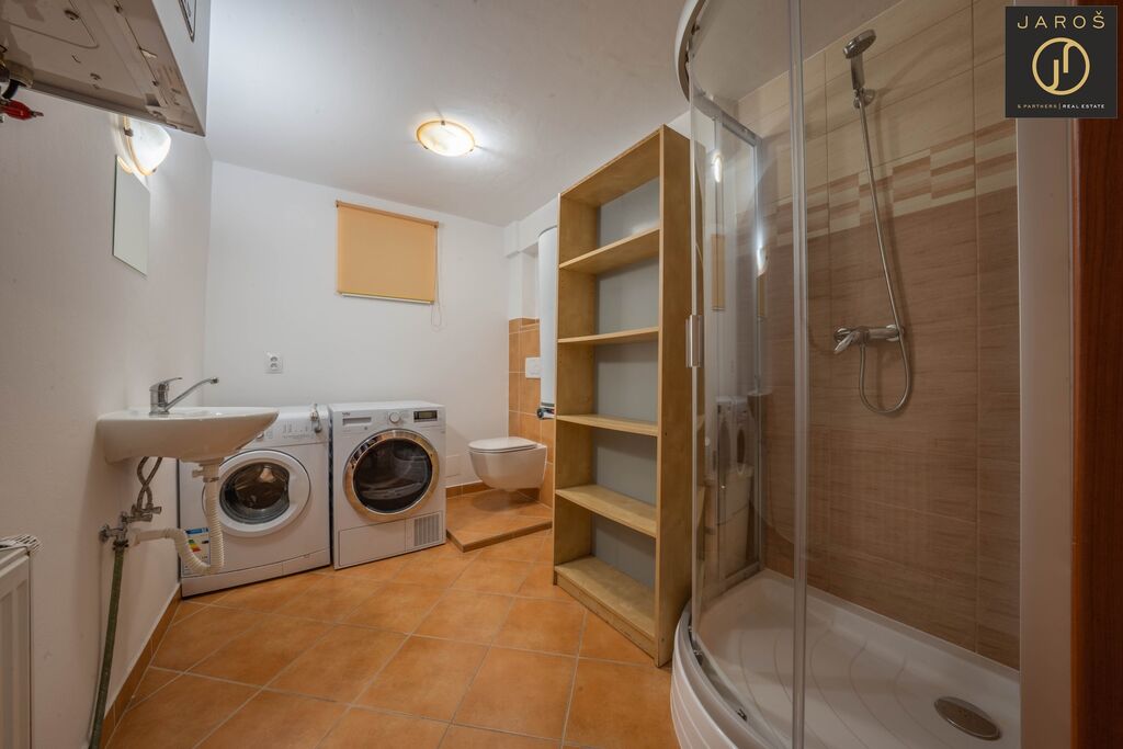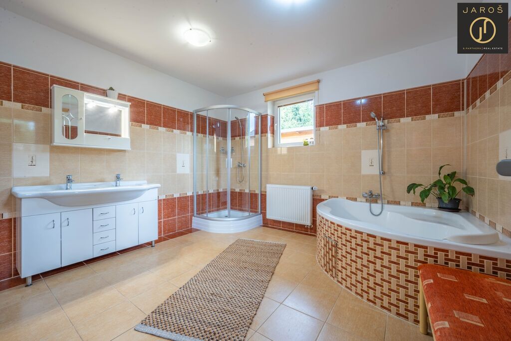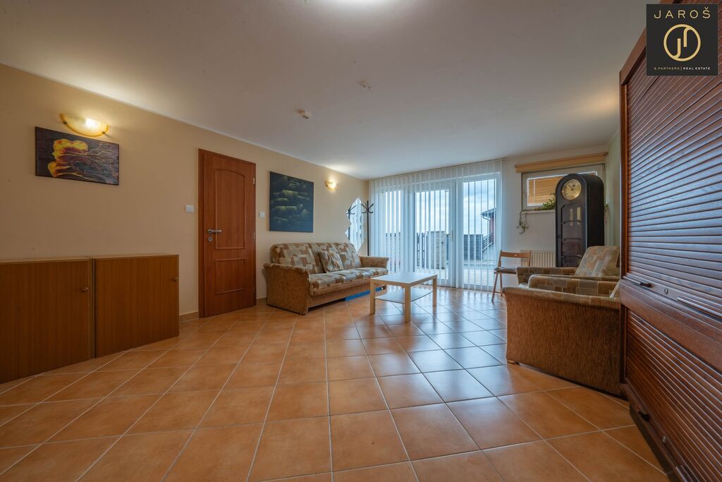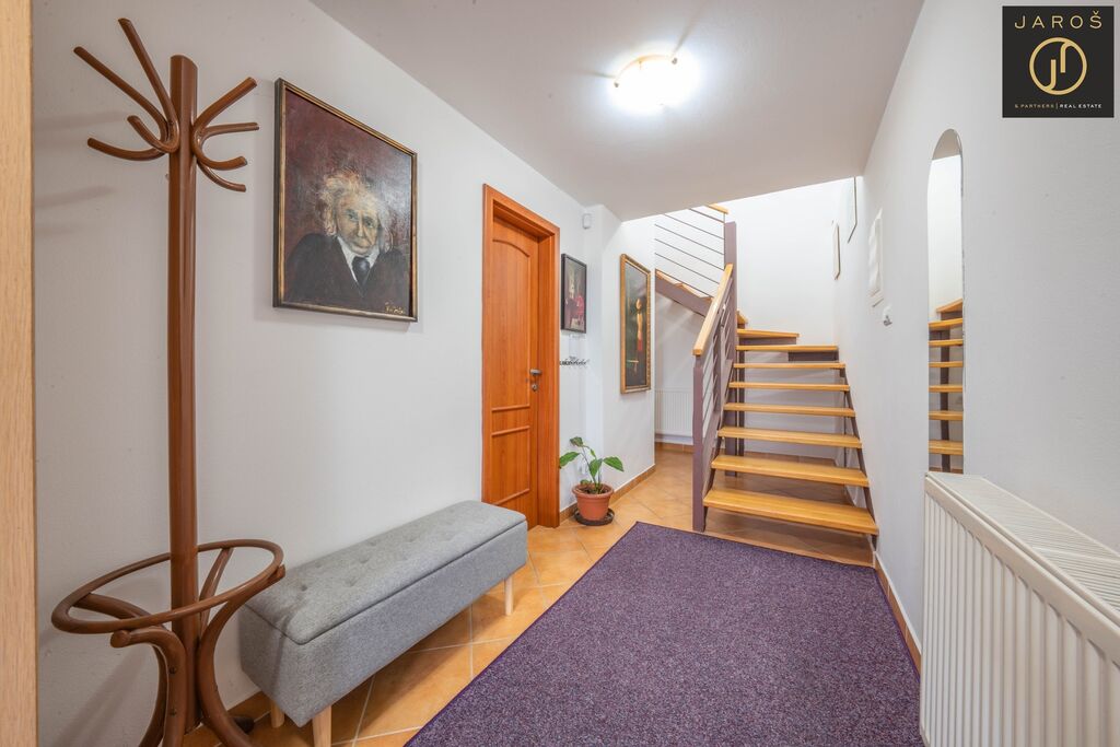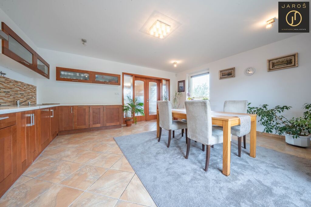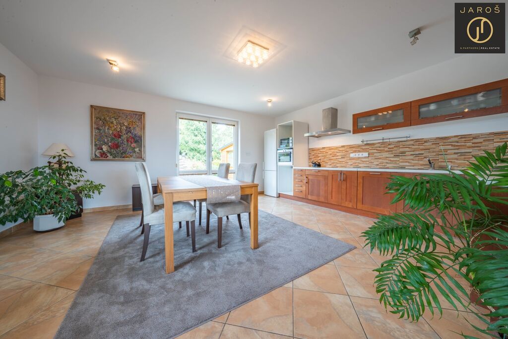 V přízemí se nachází samostatná bytová jednotka s kuchyní, koupelnou, toaletou a dalším pokojem – vhodná jako zázemí pro hosty, kancelář či menší provozovnu. V patře najdete koupelnu, toaletu, dva samostatné pokoje, jeden průchozí pokoj, prostorný obývací pokoj s lodžií a kuchyň s přímým vstupem na zahradu.