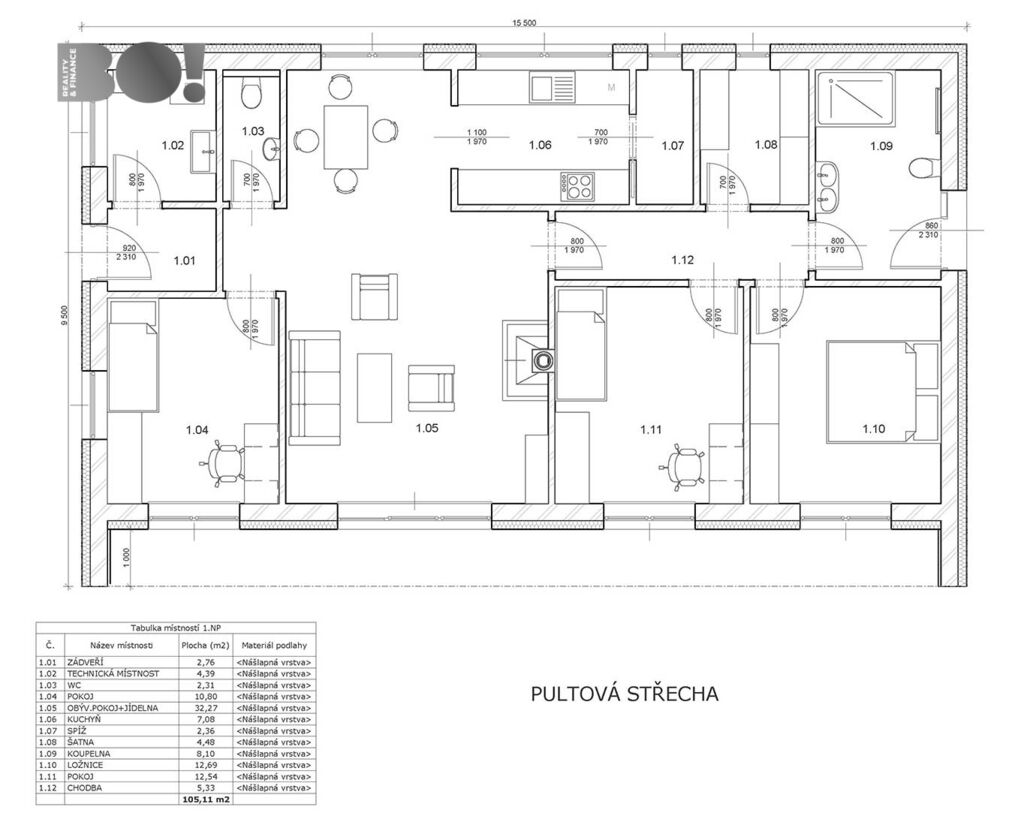 Užitná plocha: 105,11 m²