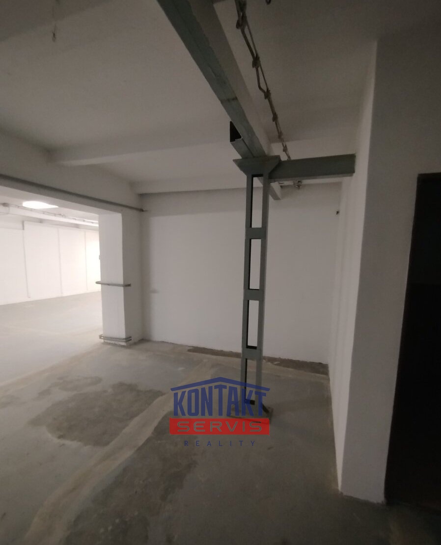 Objekt 2: Prostorná plocha 424 m² vhodná pro větší výrobu nebo skladování. Kancelářské prostory s kobercem