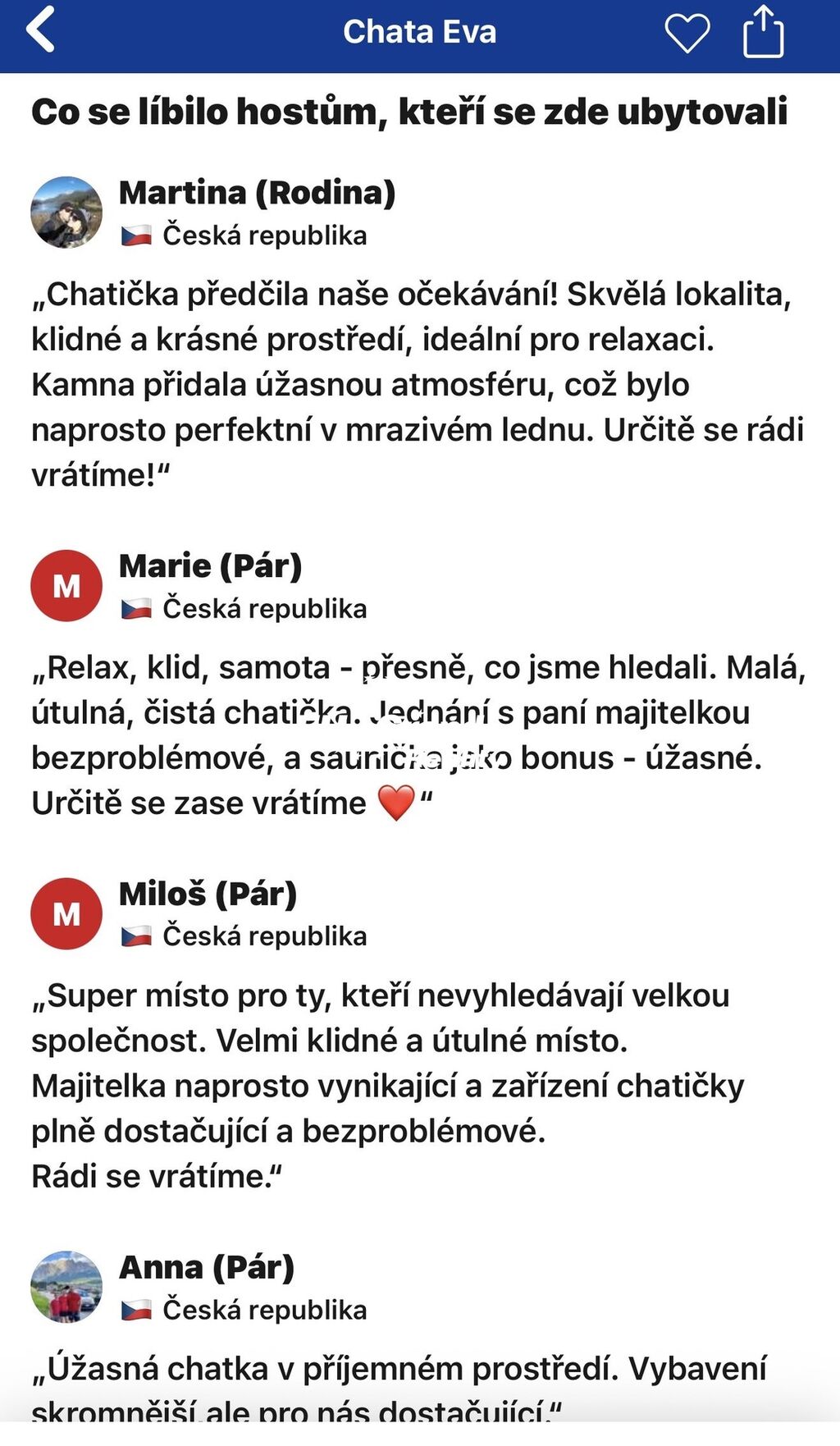 Vzhledem k plné obsazenosti je chata k prodeji od 1. 1. 2026.