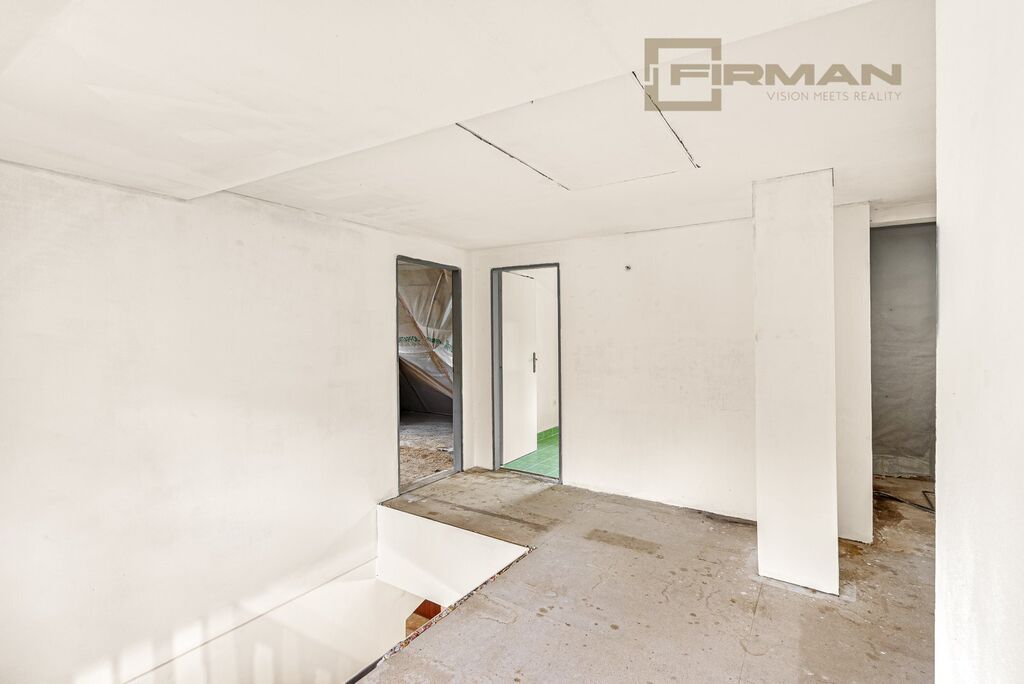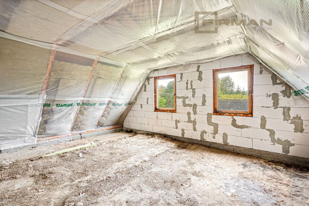 V patře jsou dva samostatné pokoje a jedna velká nedokončená místnost, kde se nabízí vybudování obývacího pokoje s kuchyňským koutem. V tomto patře se již nachází druhá koupelna. K dispozici je také dřevěné zábradlí, které je nyní demontováno. Z přízemí je vstup do sklepa.
