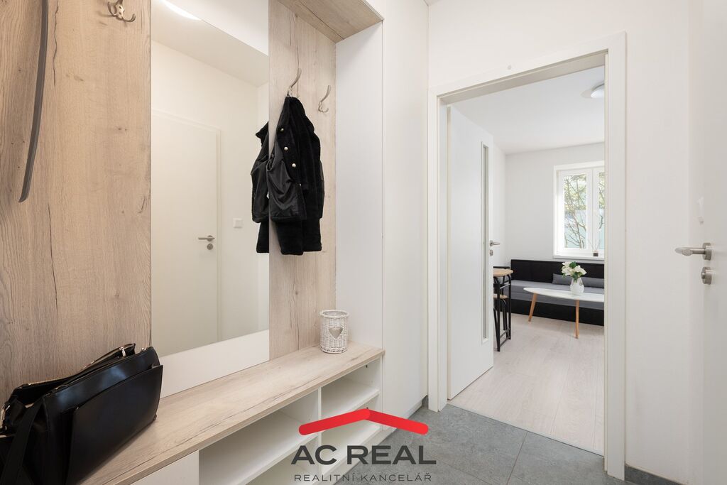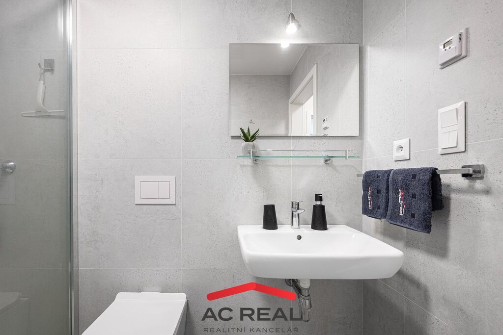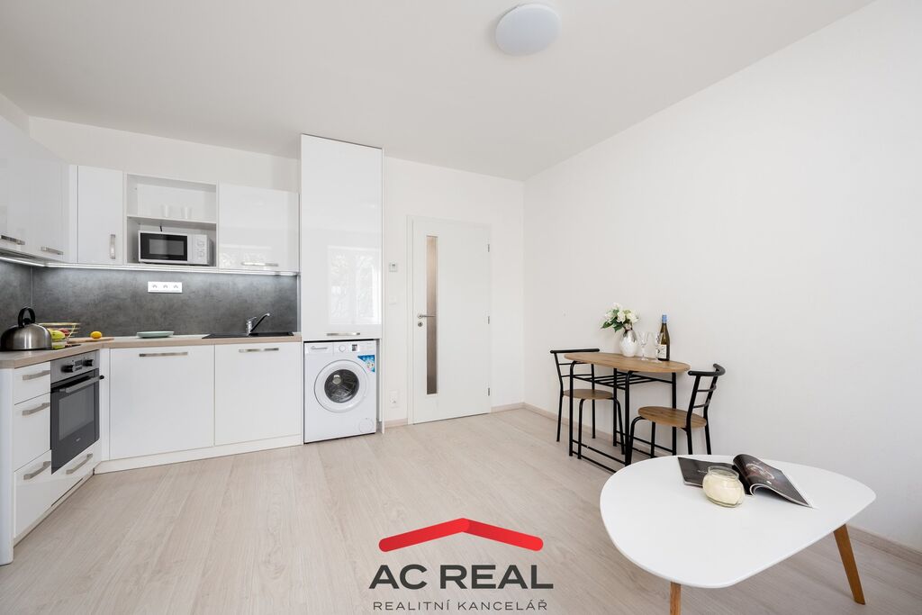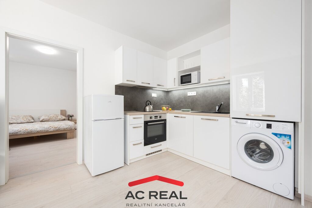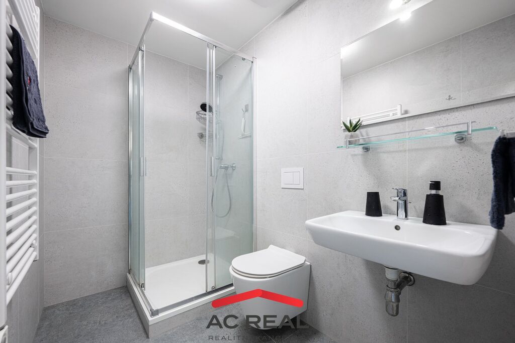 Byt je vybaven praktickými prvky pro komfortní bydlení: podlahové vytápění zajišťuje příjemnou teplotu po celý rok, elektricky ovládané venkovní žaluzie přinášejí soukromí, účinné stínění a zároveň zvyšují klid v interiéru díky tlumení hluku. K dispozici je pračka a ohřev vody zajišťuje elektrický akumulační bojler o objemu cca 80 l. Koupelna se sprchovým koutem a WC je řešena v moderním, čistém stylu. Celkově jde o krásný, světlý byt, který ocení jak jednotlivci a páry, tak investoři hledající nemovitost s výbornou pronajímatelností.