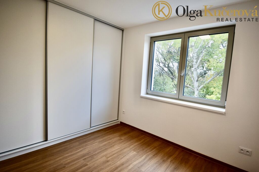 Byt je vybaven novou kuchyňskou linkou s vestavěnými spotřebiči včetně lednice, myčky a mikrovlnné trouby. V ložnici je k dispozici velká vestavěna šatní skříň a rám postele s rošty. Ostatní části bytu jsou nevybavené.