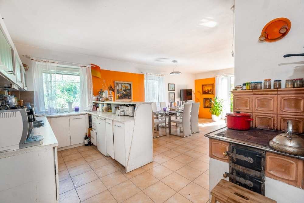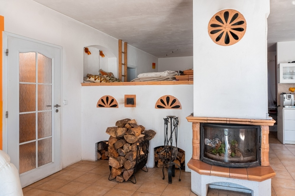 Srdcem domu je pec, krb a kachlový sporák se dvěma troubami, které vytvářejí neopakovatelnou atmosféru tepla a pohody. Večer u praskajícího ohně si zde můžete vychutnat chvíle klidu a bezpečí domova, ať už v zimě, nebo při podzimním chladu.