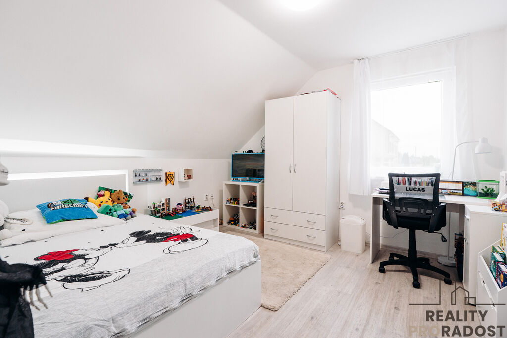 Podkroví: tři samostatné pokoje vhodné jako ložnice, dětské pokoje či pracovna.