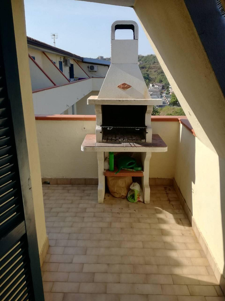 Krásný prostorný apartmán 3+kk o rozloze 65 m², v druhém patře bytového domu. Nachází v klidné části Scalea (Petrosa) která je znám á svými výhledy na moře. Díky své velikosti je vhodný i pro větší rodiny k celoročnímu bydlení. Velkým bonusem je bazén. Na prostorném balkonu je venkovní posezení s grilem. Ubnitř jsou krbová kamna na chladnější zimní večery. Byt je plně zařízený vkusným nábytkem. Nová kuchyň s kávovarem je příjemným bonusem.