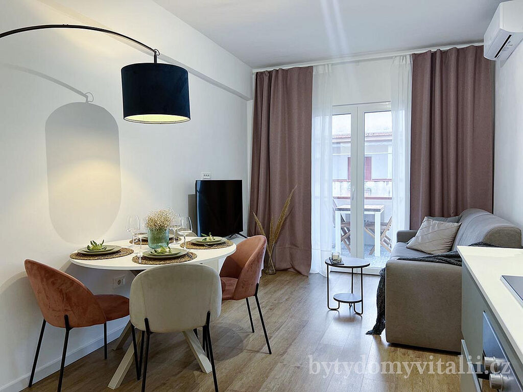 Byt se leží 800 m metrů od moře, 600 metrů od supermarketu, 700 metrů od vlakového nádraží.