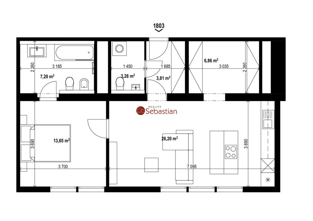 Byt 2+kk v 18. nadzemním podlaží po kompletní rekonstrukci o celkové rozloze 59,25 m2 orientovaný na západní stranu. Byt 2+kk v 18. nadzemním podlaží po kompletní rekonstrukci o celkové rozloze 59,25 m2 orientovaný na západní stranu. Byt je vhodný pro dvě až tři osoby.