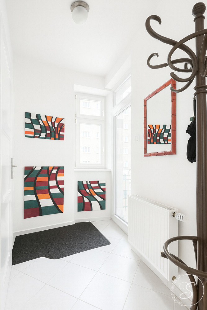 Byt působí velmi příjemným a útulným dojmem – je světlý, tichý, čistý a vybavený retro prvky jako parkety a obložkové dveře. K dispozici jsou tři samostatné pokoje, prostorná hala sloužící jako jídelna a kuchyň s oknem. Součástí vybavení je kuchyňská linka, sporák, lednice a pračka. V bytě se nachází dvě toalety, koupelna s vanou a dva balkony – jeden orientovaný do vnitrobloku a druhý do ulice Přemyslovská. Orientace bytu je na sever a jih.