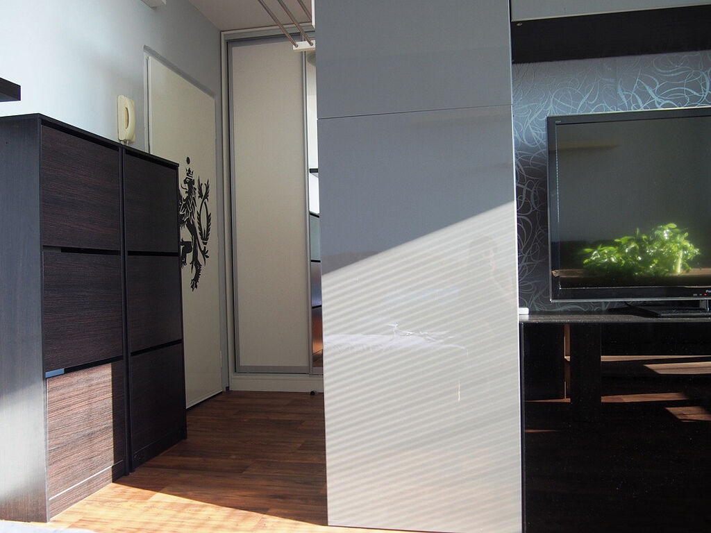 Dlouhodobý pronájem zařízeného a zcela nekuřáckého bytu 1+kk s velikou zasklenou lodžií (6m²) v 5. nadzemním podlaží domu - vyhledávaná a atraktivní lokalita PRAHA 4 - Podolí - v těsném sousedství rozlehlého parku "Na Pankráci". Bytový dům (celkem 23 bytů vchod) se nachází již na samém okraji sídliště - výhled na Pražský hrad, orientace celého bytu je na jihozápad. Byt je po celkové kompletní rekonstrukci - koupelna nově řešena prostorným zděným sprchovým koutem se skleněnou zástěnou, hydromasážní sprcha, mramor vanička. Součástí je kvalitním vybavení - k dispozici vestavěná šatní skříň se zrcadlem, zánovní pračka, nová nerez lednice s mrazákem, plynový sporák, žaluzie, garnyže, osvětlení - úsporné žárovky, stropní větrák, přídavný zámek na dveřích. Nábytek - komody, tv police, stolek, sedací souprava, nové dvojlůžko, botník, regály v komoře - umístěné v těsném sousedství bytu