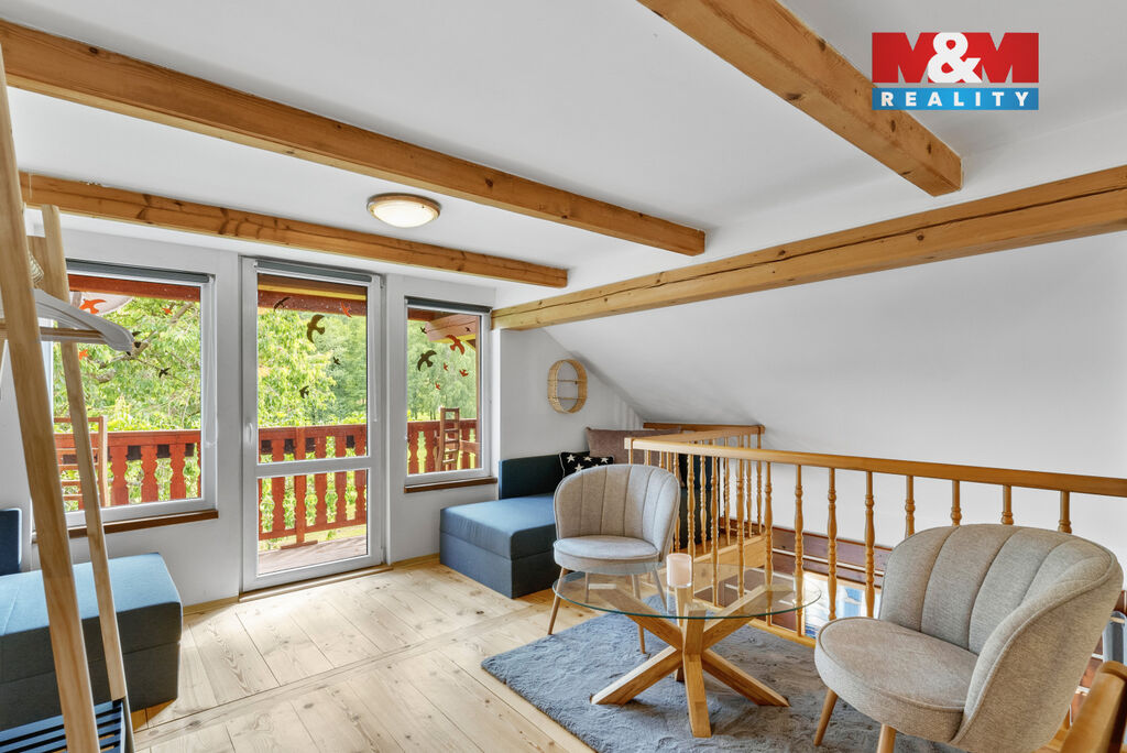 Nabízíme k prodeji krásnou dřevostavbu v klidné části obce Heřmanice v Podještědí. Tato unikátní chalupa se nachází přímo u golfového hřiště Resortu Malevil a je ideální volbou pro milovníky golfu nebo pro ty, kteří hledají bydlení obklopené zelení. Nemovitost nabízí 3 místnosti rozložené na dvou nadzemních podlažích a otevřené patro, které podtrhuje vzdušnost a moderní design interiéru. Kvalitní materiály a pečlivé zpracování zajišťují komfort a dlouhou životnost stavby. Vzhledem k bezprostřední blízkosti golfu se nabízí i možnost investice jako pronájem chalupy lukrativní klientele. Celková užitná plocha činí 95 m² a je situována na pozemku o rozloze 965 m². K prodeji i veškeré vybavení za cenu 70.000,- Kč. Výborný stav nemovitosti umožňuje okamžité nastěhování. Vychutnejte si ranní kávu na terase nebo balkoně s výhledem na precizně udržované golfové hřiště. Nechte se okouzlit tímto jedinečným místem a přijeďte se sami přesvědčit do srdce Lužických hor.