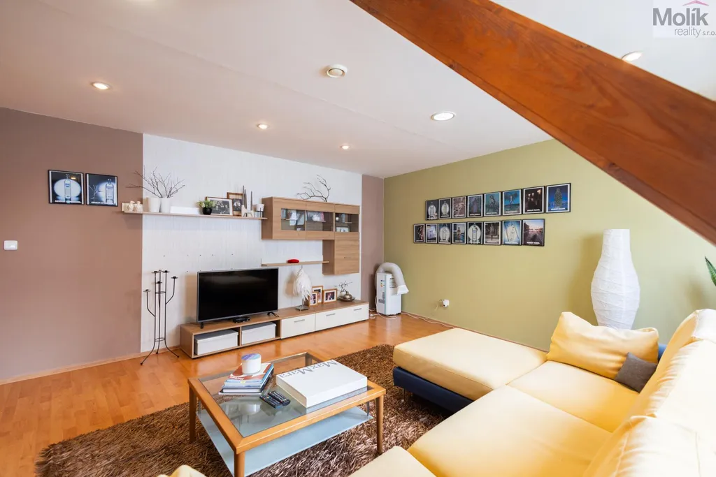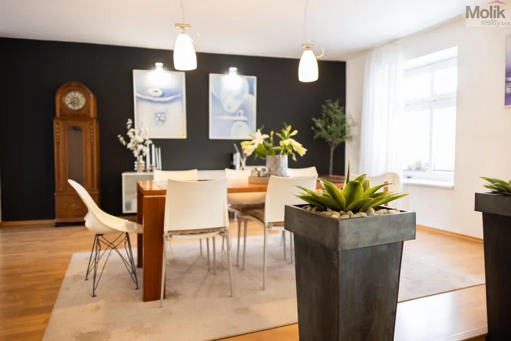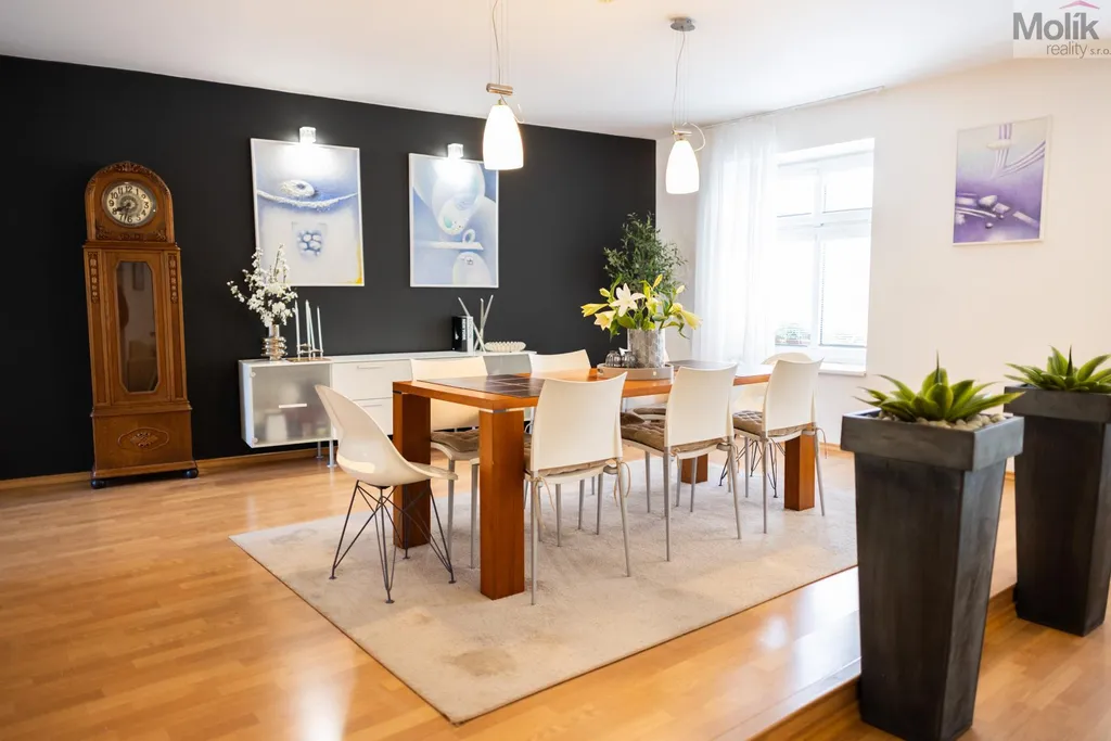 Nabízí tři samostatné pokoje, kuchyň, koupelnu s vanou a vířivkou, saunu a velkou technickou místnost, ve které je pračka, sušička, žehlící prkno i věšák na prádlo. Celý byt působí velmi útulně, je světlý, moderní a prakticky řešený.