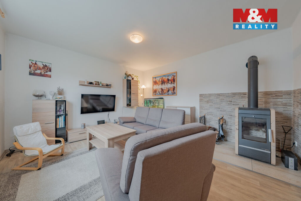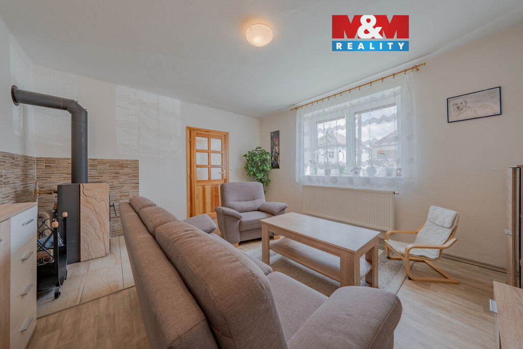 Nabízíme k prodeji jednopodlažní řadový rodinný dům nacházející se na kraji obce. Dům je po rekonstrukci vnitřních prostor s možností okamžitého bydlení a nízkými provozními náklady. Je napojen na veškeré inženýrské sítě. V přízemí najdeme obývací pokoj s krbovými kamny, prostornou kuchyň, průchozí dětský pokoj, ložnici, koupelnu s WC a technickou místnost s výstupem na dvorek, kterým projdeme na hodně svažitou zahradu.