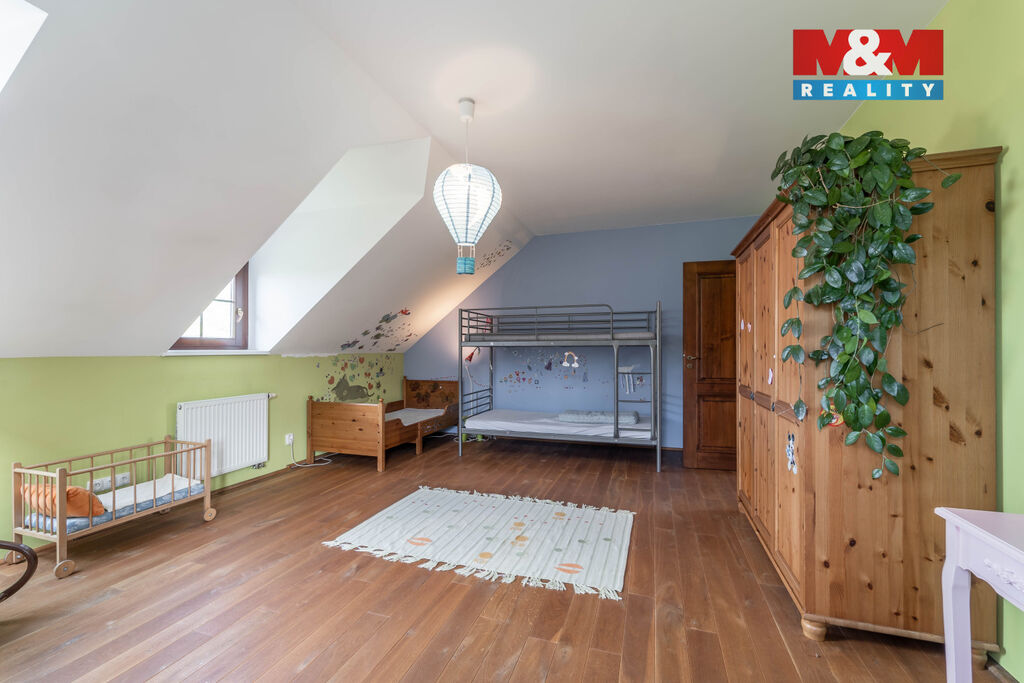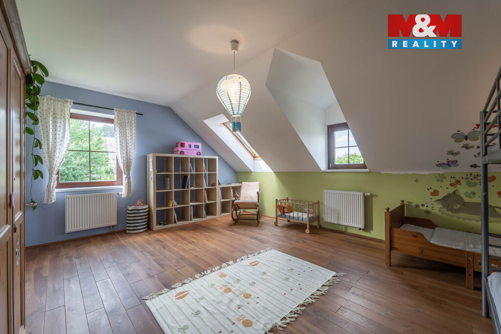 Nová snížená cena. Exkluzivně pro Vás k prodeji výjimečný rodinný dům v klidné části obce Mořina na Berounsku, jen pár minut od okraje Prahy. Tento samostatně stojící dům, situovaný v nádherné lokalitě, je ideální pro vícegenerační bydlení či klidný rodinný život. Nemovitost se rozkládá na pozemku o velikosti 1302 m² a nabízí prostornou užitnou plochu 240 m². Dům má dvě nadzemní podlaží a jedno podzemní, celkem 6 místností, včetně průchozí šatny a komory. Velké a světlé pokoje poskytují jedinečný výhled do okolní malebné krajiny. K dispozici je také sklep a prostorná garáž s dílnou. Obývací pokoj má přímý vstup na zahradu o rozloze více než 1000 m². V obci a blízkém okolí je dostupná veškerá občanská vybavenost. Skvělá investice díky velikosti pozemku a unikátní poloze. Využijte jedinečnou šanci bydlet v přírodě, klidu a přesto na dosah všeho, co potřebujete k modernímu bydlení. Velmi rádi také pomůžeme s financováním od našeho specialisty. Těšíme se na Vás v obci Mořina na Berounsku.