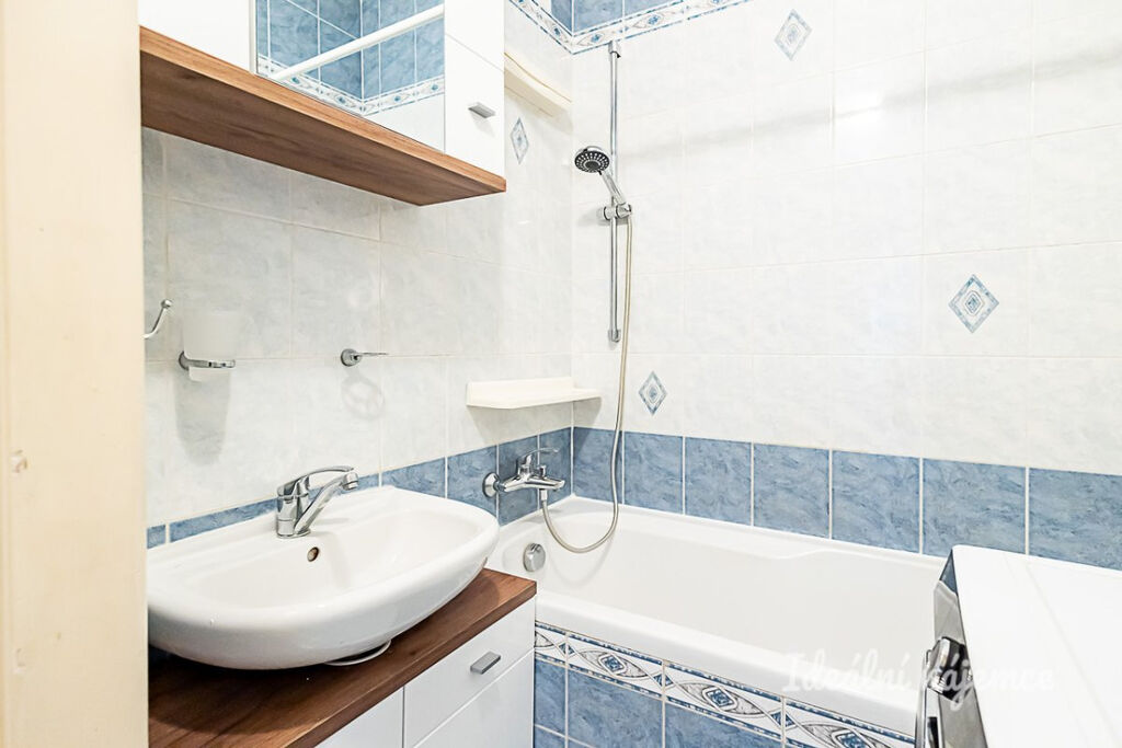 Byt je plně vybavený, takže se můžete ihned nastěhovat bez starostí se zařizováním. Moderní kuchyně je vybavena elektrickou troubou, indukční varnou deskou, digestoří, myčkou a jídelním koutem. Hlavní obytná místnost nabízí pohodlný gauč s křeslem, konferenční stolek a dostatek úložného prostoru. K dispozici jsou dva samostatné pokoje, vhodné jako ložnice, dětský pokoj či pracovna. Koupelna je vybavena vanou, umyvadlem, koupelnovou skříňkou a pračkou, toaleta je umístěna samostatně.