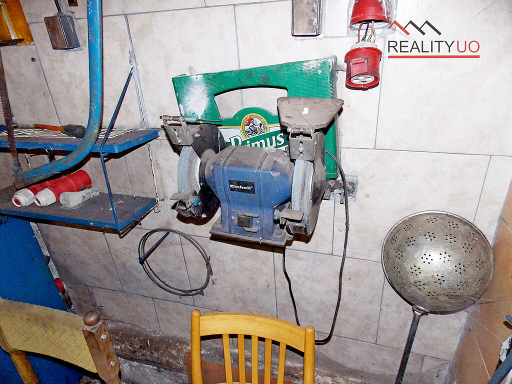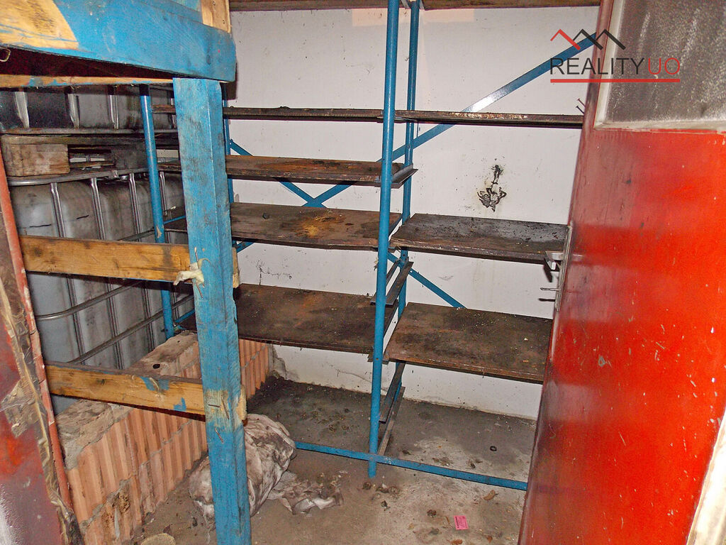 Na obytnou část navazuje sklad, kotelna a uhelna, koupelna pro dílnu. Dále velká dílna s WC a umyvadlem.