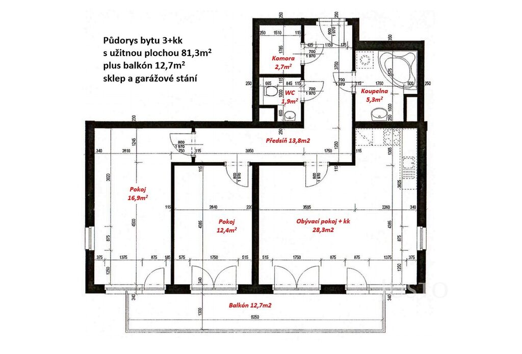 Součástí ceny bytu je garážové stání v suterénu domu a sklepní kóje.