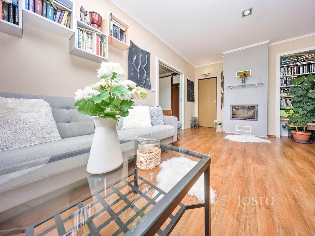 Obývací pokoj přímo navazuje na kuchyni a proto můžete být součástí dění v srdci bytu, i když se třeba díváte společně na televizi nebo jen tak koukáte do plápolajícího krbu. Krb je úžasnou dominantou obývacího pokoje a navozuje útulnou a pohodovou atmosféru v chladných zimních večerech. Sedět v pokoji a jen tak koukat do ohně je prostě k nezaplacení.