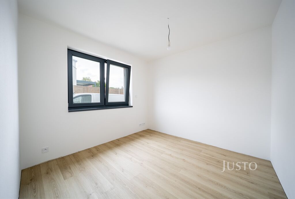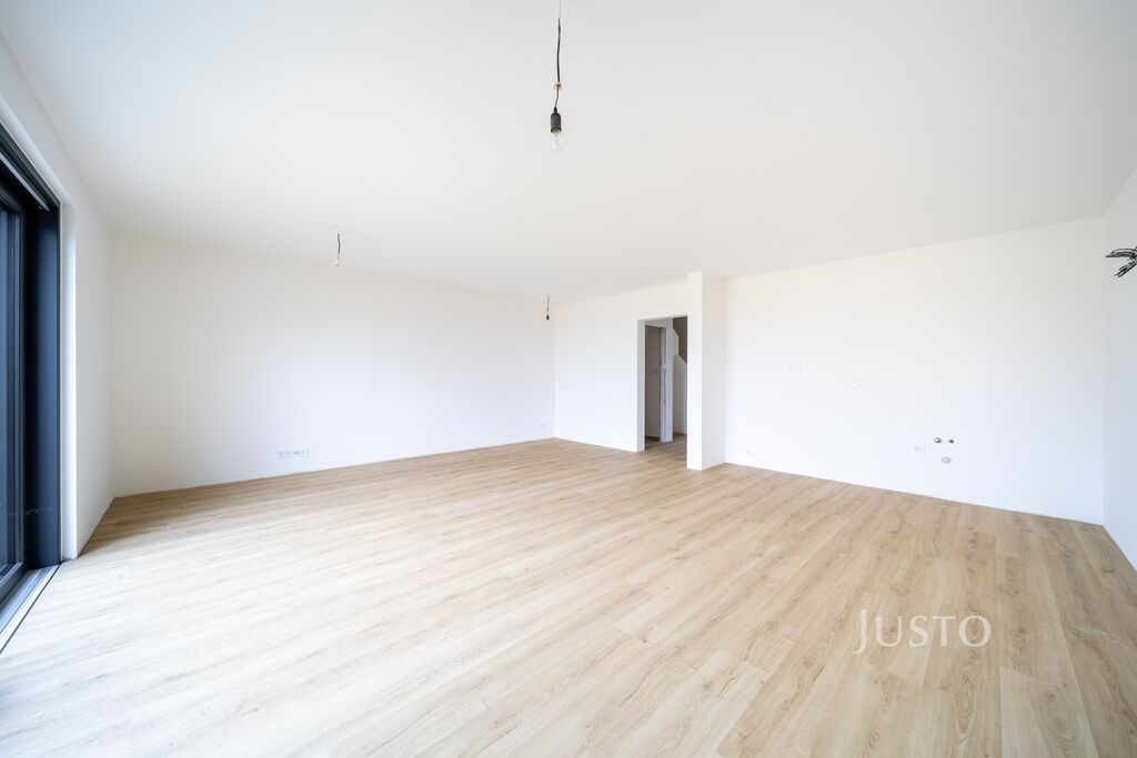 Přízemí nabízí světlý a prostorný obývací pokoj s kuchyňským koutem a přímým vstupem na terasu a zahradu (93 m²), která náleží výhradně k této jednotce – navíc s přístupem i z vnější strany pozemku. Dále zde najdete koupelnu se sprchovým koutem a toaletou a také pokoj ideální jako pracovna či pokoj pro hosty.