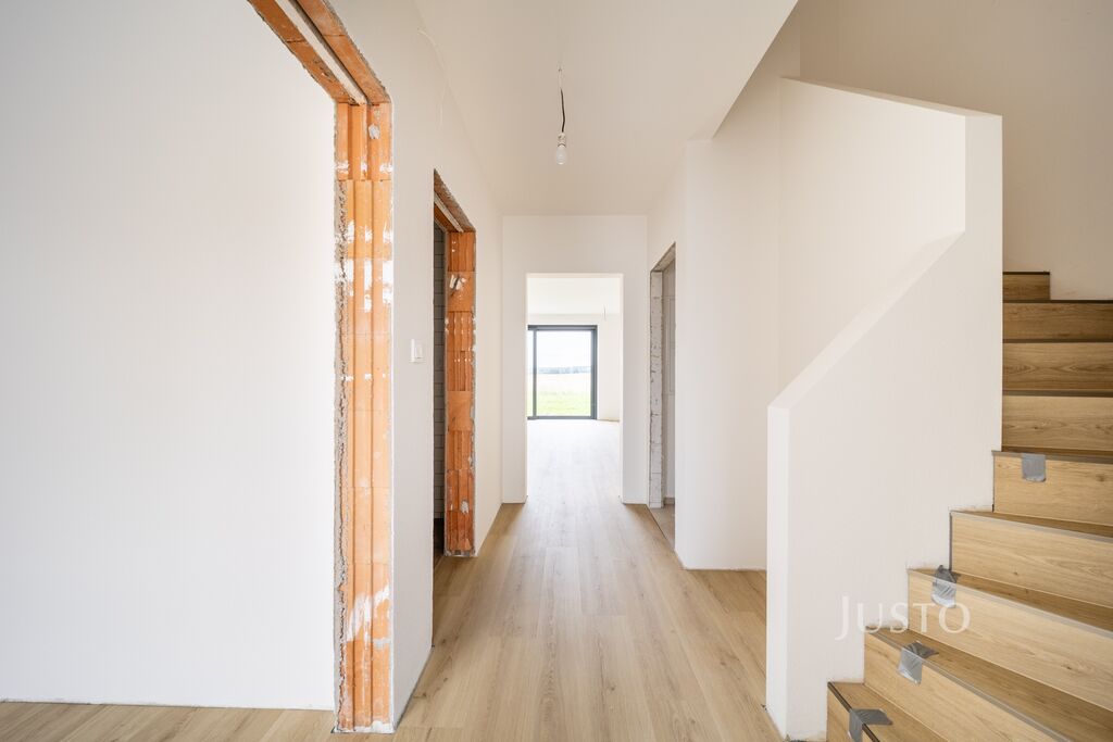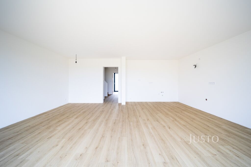 Ve výhradním zastoupení majitele Vám představuji prodej prostřední jednotky v novostavbě jihozápadně orientovaného rodinného domu v Libníči. Jednotka o dispozici 5+kk a užitné ploše 124,75 m² právě prochází dokončovacími pracemi – od podlah, obkladů, sanity až po venkovní zpevněné plochy.