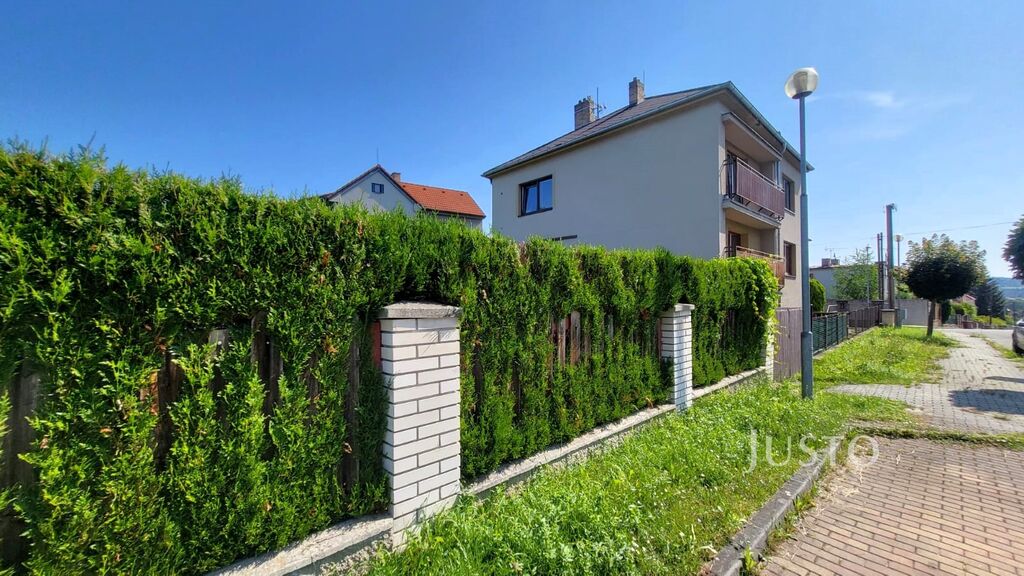V přízemí domu je pak garáž, která je průchozí do sklepa. Zahrada je s pergolou a skladem zahradní techniky, který se nachází pod terasou přízemního bytu. Zahrada je oplocená, zatravněná, soukromí na ní zajišťuje vzrostlý živý plot. Byt je velmi pěkný, prostorný, světlý. Prošel rekonstrukcí koupelny, kuchyně, obytných místností, má nová plastová okna. Na dokončení čeká toaleta a vstupní chodba. Je vytápěn elektrokotlem nebo krbovými kamny, které jsou umístěny v obývacím pokoji. Současní majitelé využívají v zimních měsících převážně krbová kamna. Je zde možnost připojení na plynovou přípojku.