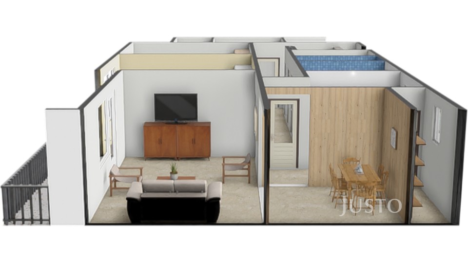 Dům je rozdělen na dvě bytové jednotky, v přízemí je byt s dispozicí 3+1 a v patře je byt o dispozici 2+1 s příslušenstvím. Vstup do domu je přes společné zádveří, přízemní byt nabízí dvě samostatné místnosti, kuchyni s praktickou spíží, jídelní kout a obývací pokoj s terasou. Koupelna je s vanou, toaleta je zvlášť. V podkroví je obytná kuchyně s místem pro jídelní stůl, prostorný obývací pokoj s terasou a samostatná ložnice. Koupelna je zde menší se sprchovou vaničkou a toaleta je zvlášť.
