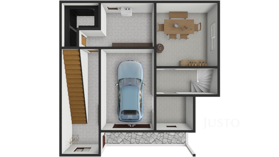 1. NP: garáž, sklad, vinárna, technická místnost s plynovým kotlem a dalšími úložnými prostory.