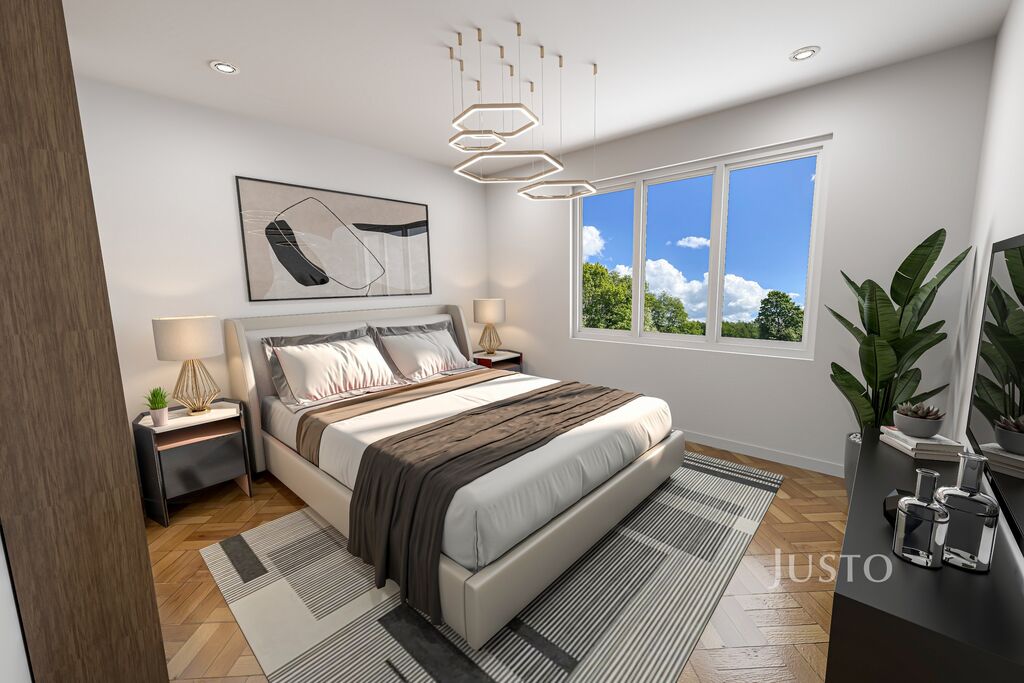 2. patro: obývací pokoj, dva pokoje, koupelna se sprchovým koutem, balkon do ulice, 59,1 m²