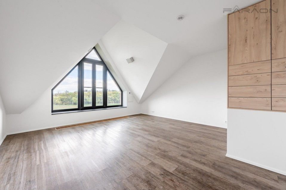 Dispozice: vstupní chodba, technická místnost, obývací pokoj s přímým vstupem na terasu, koupelna. V mezipatře je jídelna propojená s plně vybavenou kuchyní, spíž a další obývací. V patře jsou dvě ložnice se šatnou, jedna s lodžií a koupelna. V podkroví je ložnice se šatnou a koupelna. V suterénu domu je garáž, technická místnost, kotelna a prádelna.