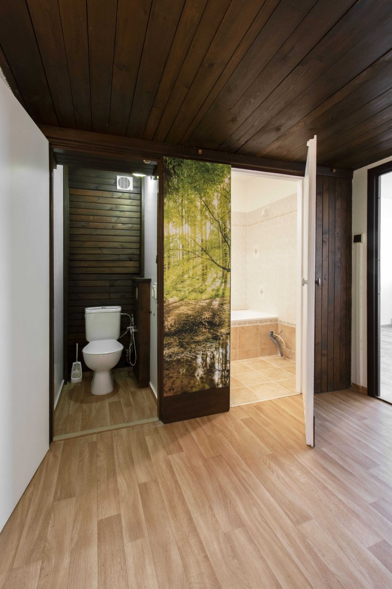 Byt se nabízí částečně vybavený. Kuchyňská linka disponuje lednicí, sporákem, digestoří, myčkou, troubou a mikrovlnou troubou. Koupelna je zařízená vanou a umyvadlem se zrcadlem. Toaleta se nachází samostatně. V bytě jsou nové podlahy. K bytu náleží také sklep.