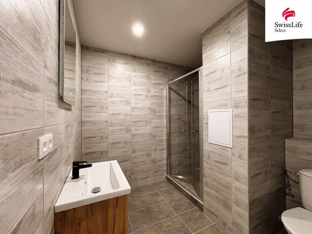 Dominantou bytu je moderní kuchyňská linka s vestavnými spotřebiči varná deska, trouba, myčka, digestoř. Prostorná koupelna působí elegantně a je vybavena sprchovým koutem, toaletou a umyvadlovou skříňkou s velkým zrcadlem a LED podsvícením.