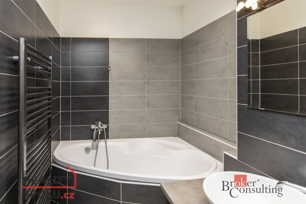 Dispozice: prostorná vstupní chodba, koupelna se sprchovým koutem, umyvadlem a rohovou vanou, samostatné WC, dvě samostatné ložnice, obývací pokoj s kuchyňským koutem, balkón s výhledem na město.