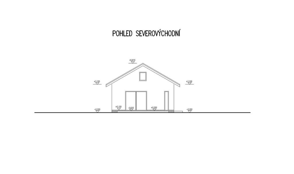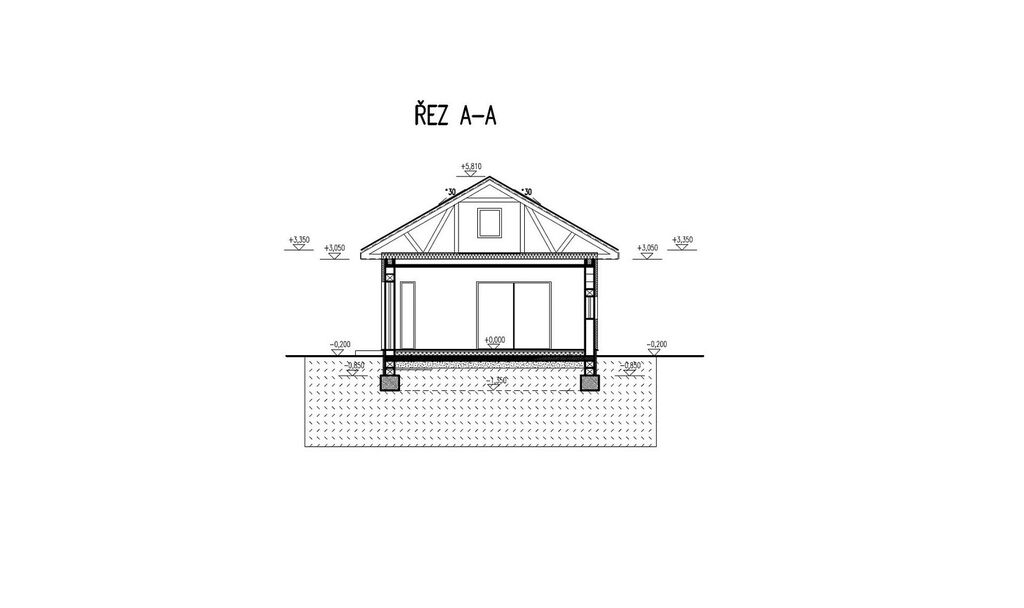 – Střecha: sedlová, dřevěná vazníková konstrukce, krytina plechová Satjam nebo betonová taška, klempířské prvky v barvě krytiny, difuzní fólie a kompletní podbití v barvě fasády