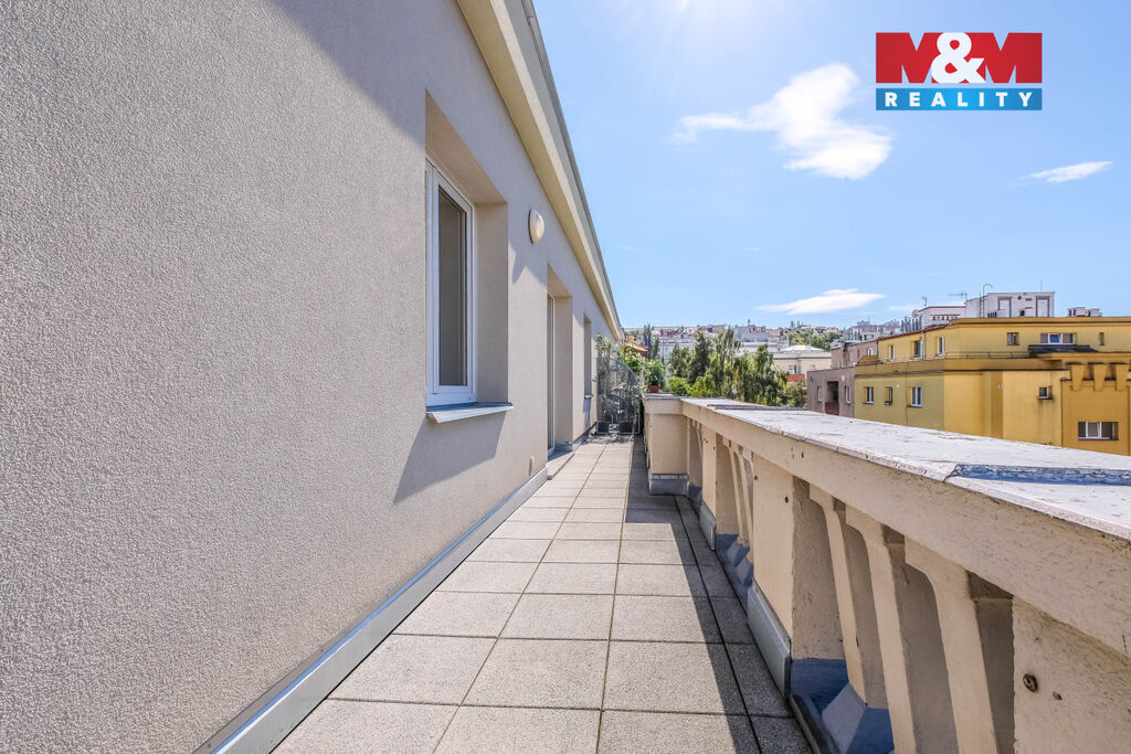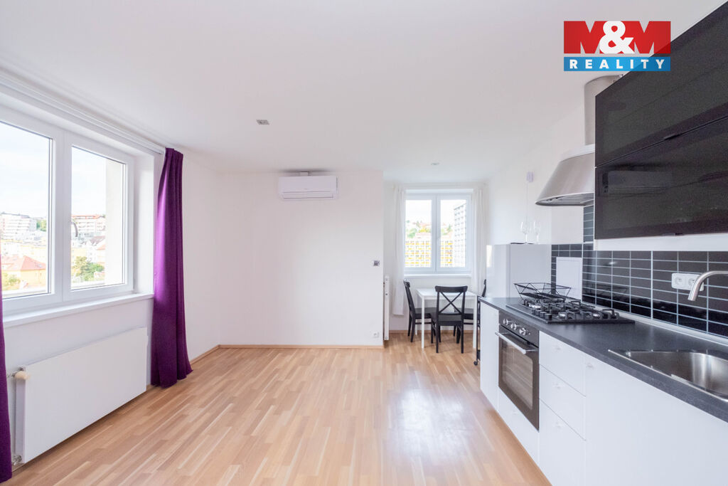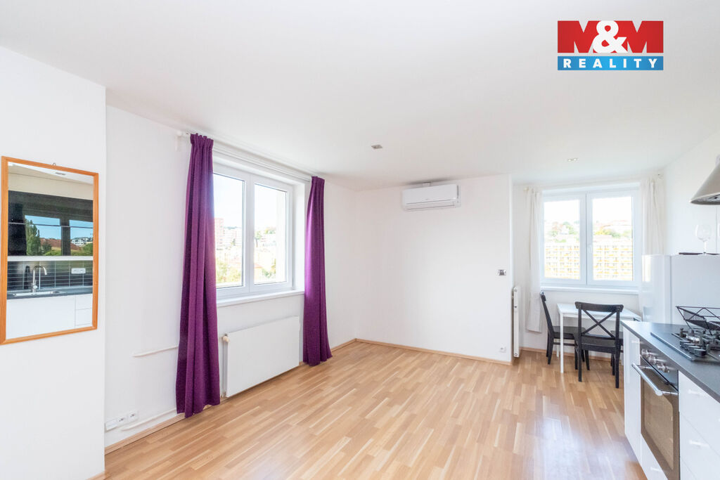 Nabízíme krásný byt 2+kk o rozloze 45 m² s terasou více než 15 m² v atraktivní lokalitě Prahy 6, na Břevnově. Byt se nachází v posledním 5. patře cihlového domu s výtahem a je orientován na západ. Je vybaven klimatizací a kuchyňskou linkou s plynovou varnou deskou, elektrickou troubou, lednicí i pračkou. Součástí vybavení je jídelní stůl se židlemi, televize a internet od Vodafone, který je zahrnut v ceně nájmu. Podlahy jsou kombinací dřevěných parket a plovoucí podlahy, okna jsou plastová. Koupelna je vybavena sprchou, topným žebříkem a toaletou. Vytápění a teplá voda jsou zajištěny dálkovým rozvodem. K bytu náleží sklepní kóje. Všechny služby, včetně zastávek MHD, jsou v docházkové vzdálenosti (autobus Kajetánka, tramvaj Drinopol). Byt je určen k dlouhodobému bydlení pro jednotlivce či pár, připravený k nastěhování ihned. Pro více informací a domluvení prohlídky kontaktujte makléře.