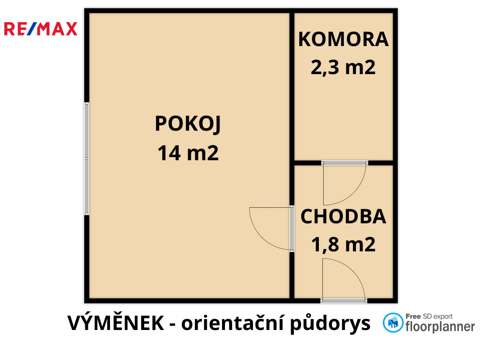 Součástí domu je menší výměnek 1+kk (14 m²), který lze využít jako zázemí během rekonstrukce, letní byt, případně pro hosty (není zavedena voda, vytápění na tuhá paliva, suché WC)