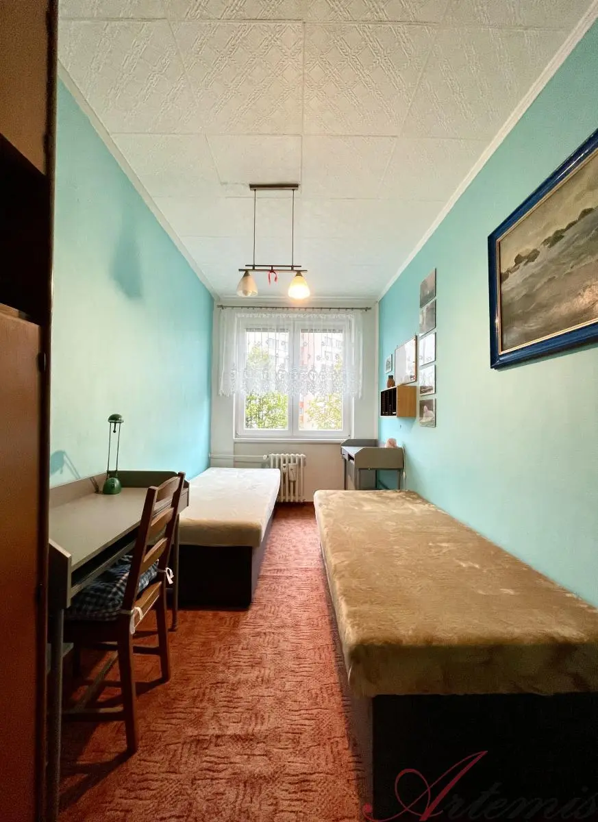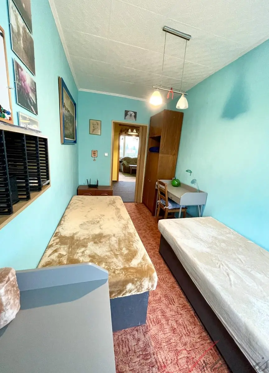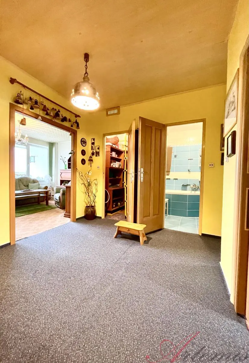 Prostorný byt po starší rekonstrukci sestává z kuchyně, tří pokojů, komory, sociálního zařízení a samostatného WC. Plně vybavená kuchyň disponuje kuchyňskou linkou, plynovým sporákem, digestoří, volně stojící lednicí s mrazákem a mikrovlnnou troubou.