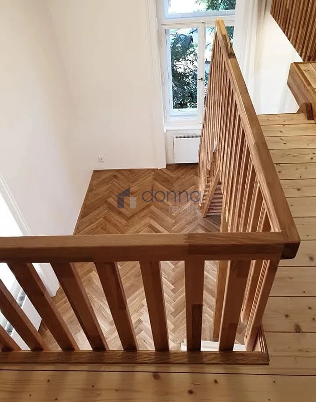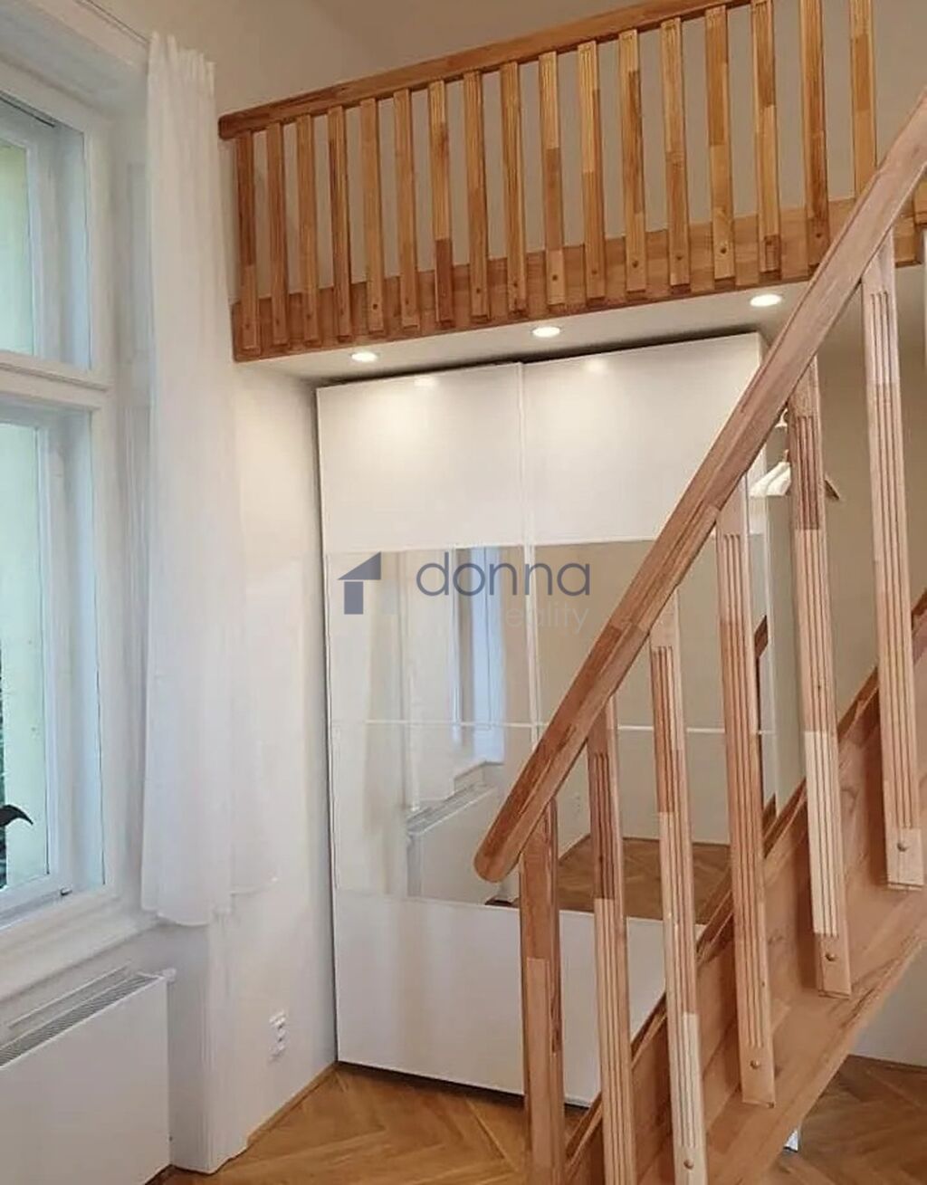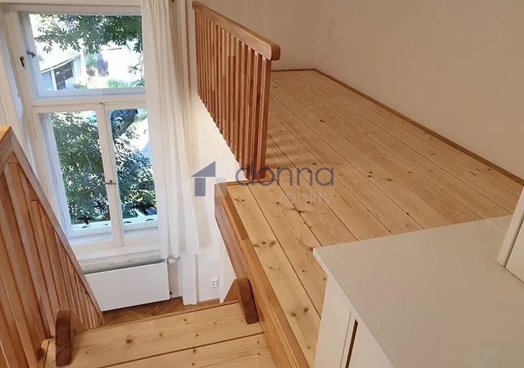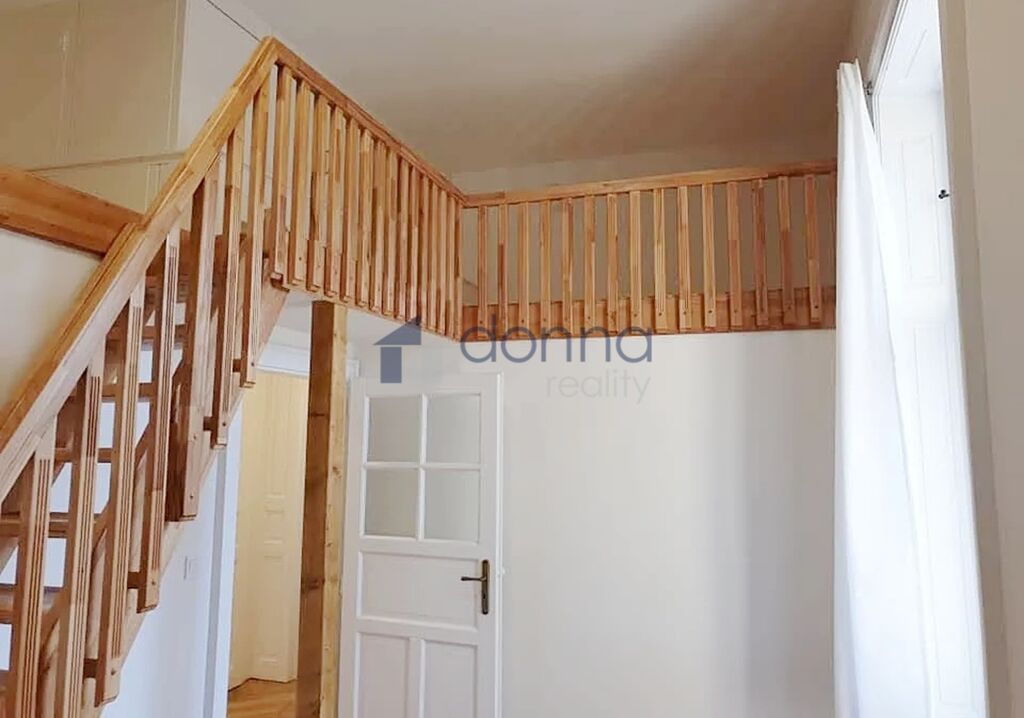 Byt je po rekonstrukci, zařízený nábytkem a spotřebiči, patro na spaní/úložný prostor.
