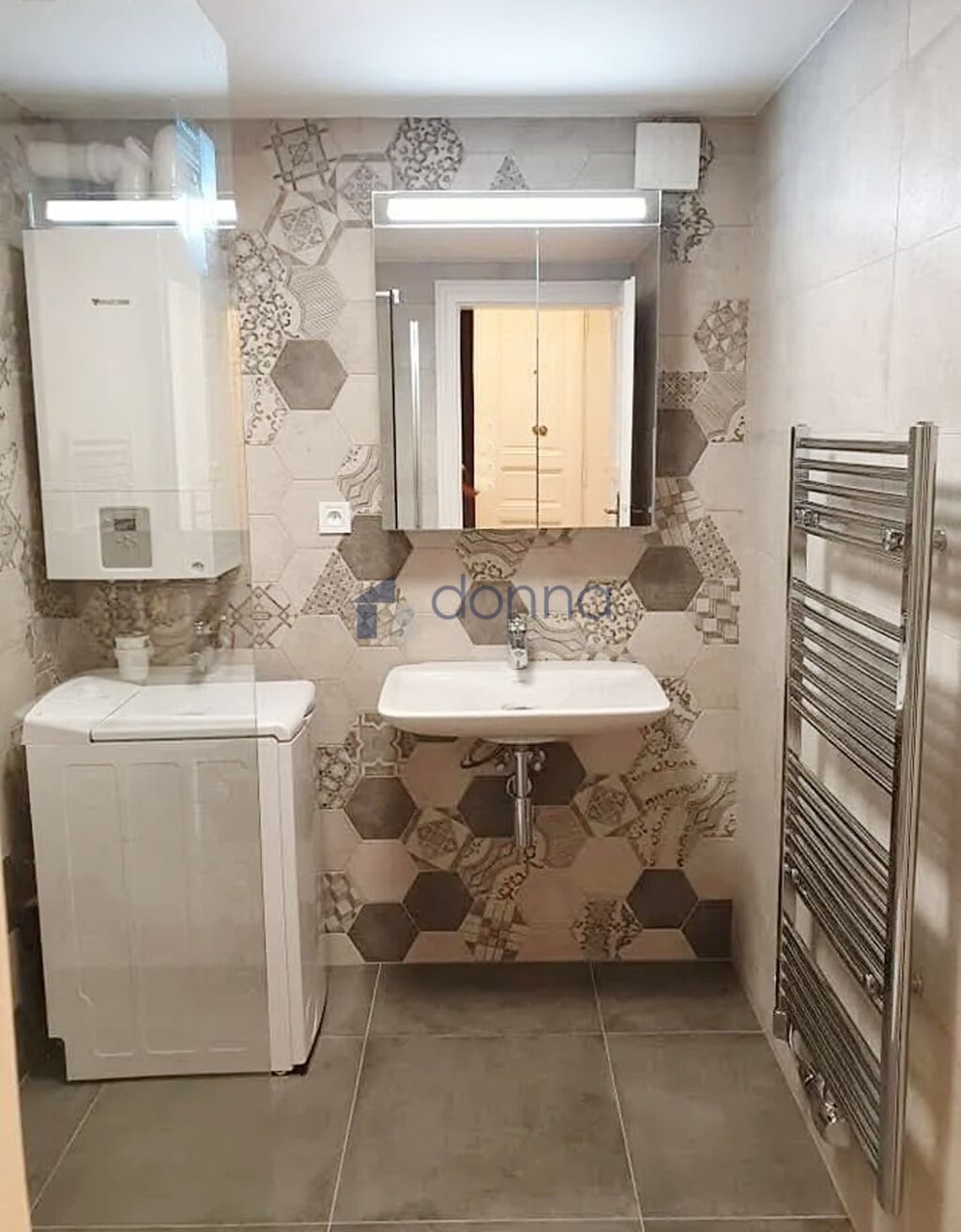Moderní úsporný kotel na vytápění a ohřev vody, LED světla.