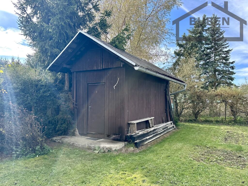 Celková plocha pozemku činí 425 m2. Pozemek je v katastru nemovitostí veden jako trvalý travní porost. Na zahradě se nachází chatka (15m2, zapsaná v katastru nemovitostí jako jiná stavba) a kolna na nářadí.