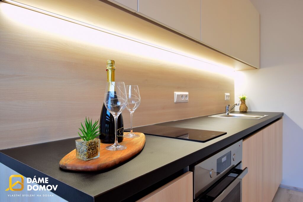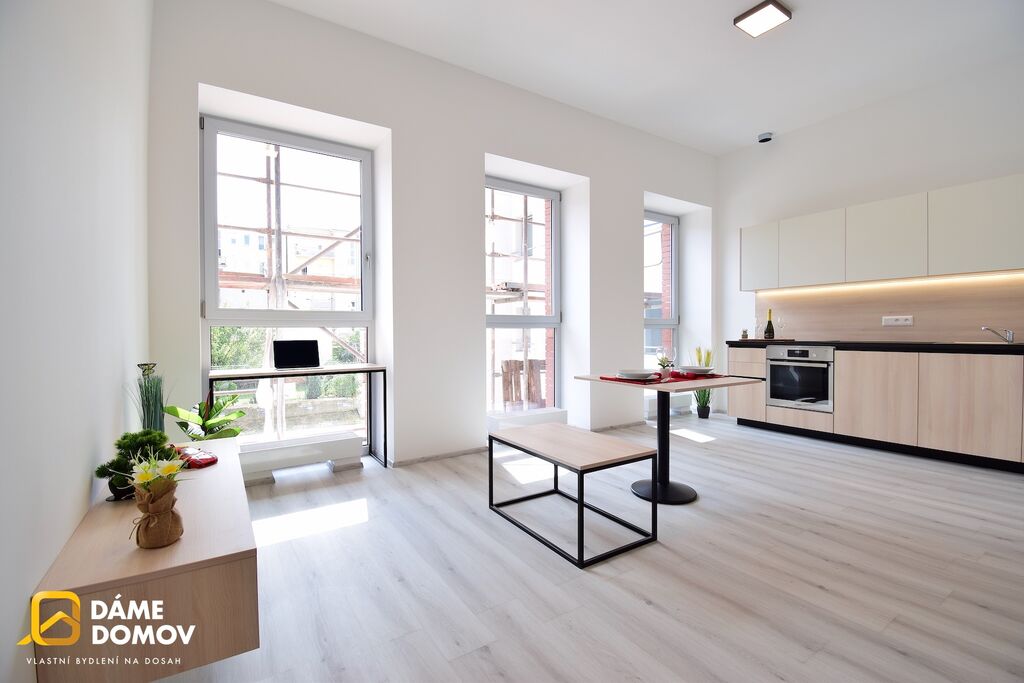 Byt je zařízen kvalitním nábytkem na míru s dostatkem úložných prostor. Kuchyň je vybavena vestavnou varnou deskou, vestavnou troubou, vestavnou ledničkou, nerezovým dřezem. Dále je v pokoji dvojpostel s matracemi, sestava skříní, počítačový stůl, jídelní stůl a konferenční stůl, závěsná skříňka pod TV. V chodbě sestava skříní a odkládací stěna se zrcadlem. Krásná koupelna se sprchovým koutem. Možnost odkoupit od předešlého nájemce pračku.