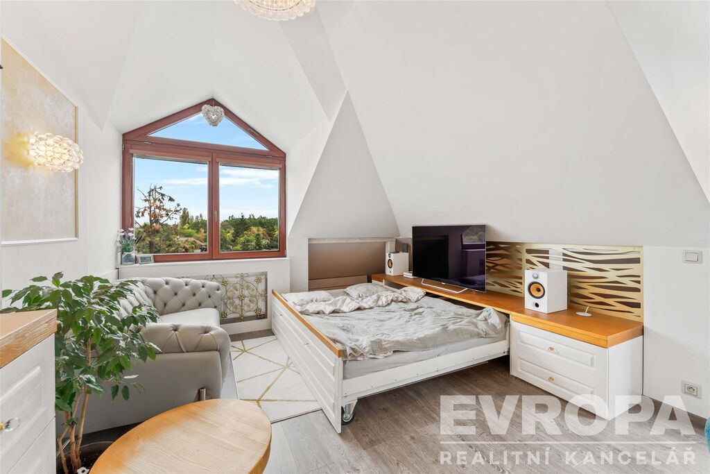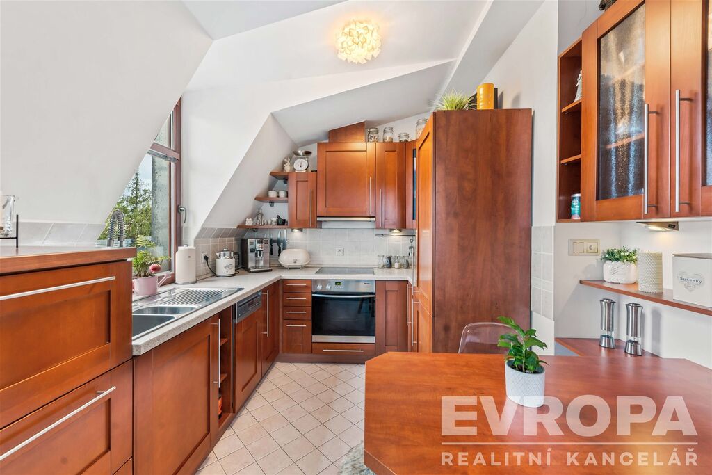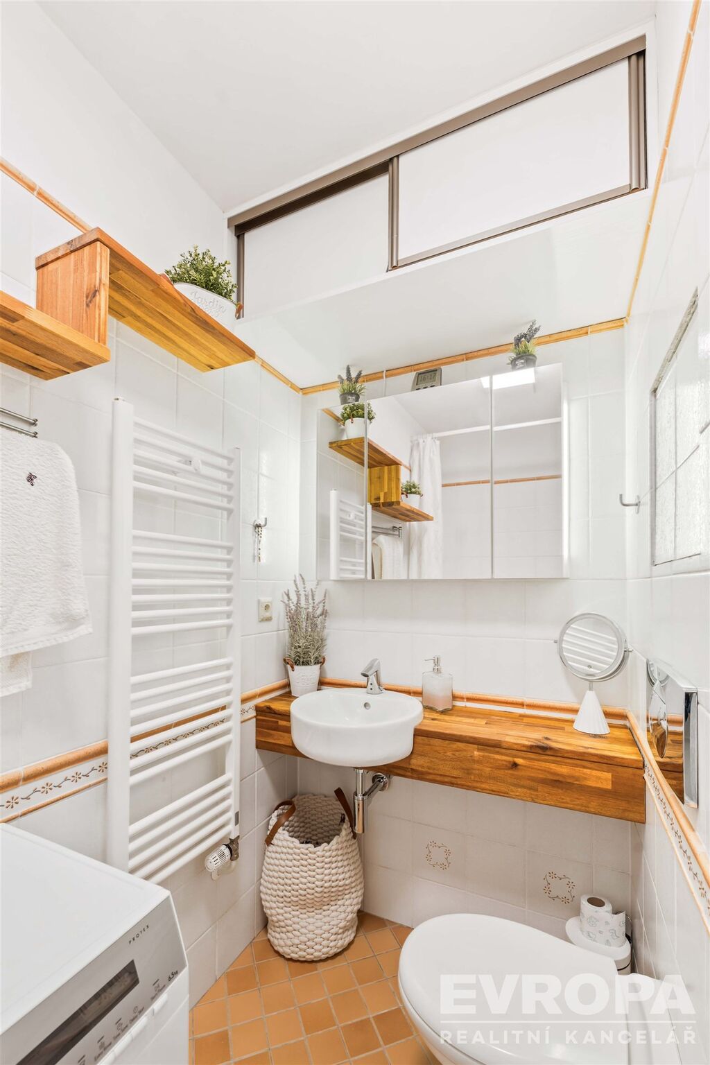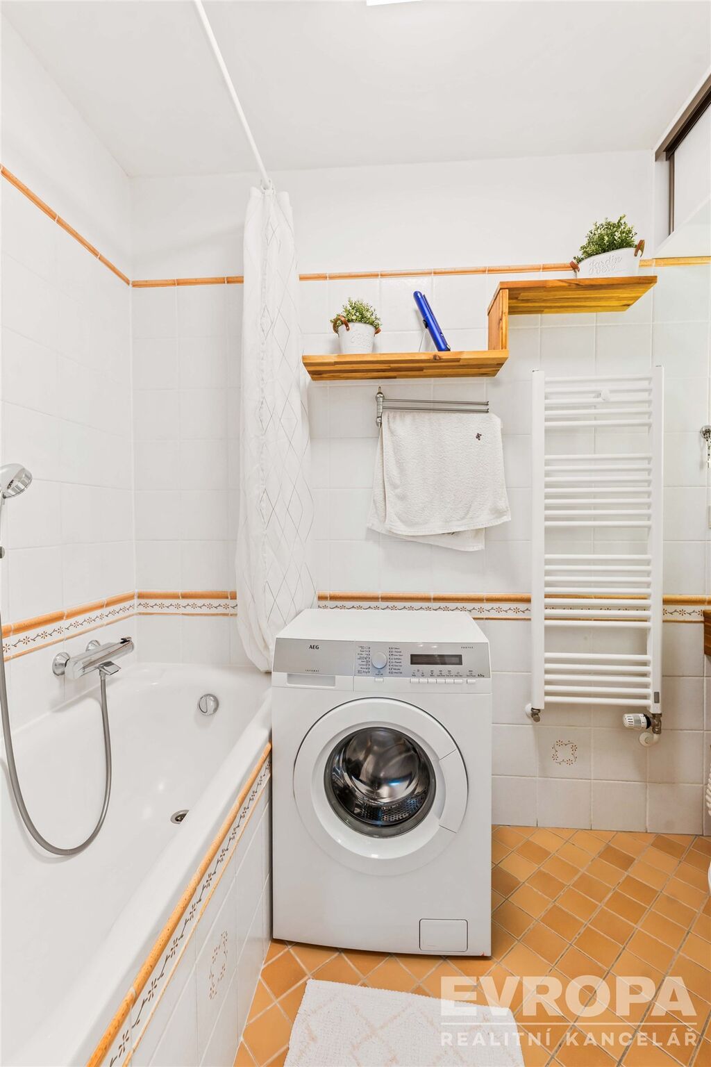 Byt se prodává bez vybavení, součástí zůstává pouze kuchyňská linka se spotřebiči a postel v obývacím pokoji.