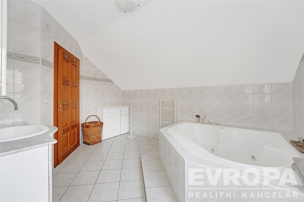 Podkroví nabízí velkou galerie, tři ložnice s balkóny, šatnu a koupelnu s vanou, bidetem a toaletou. Pod střechou jsou praktické půdní prostory pro uskladnění například sezónního oblečení.