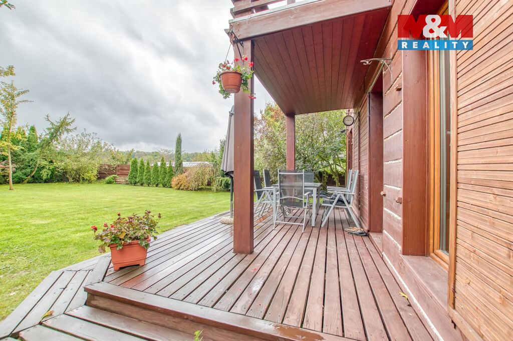 Tato útulná dřevostavba se pyšní 3 samostatnými pokoji a prostorným obývacím pokojem propojený s kuchyňským koutem.