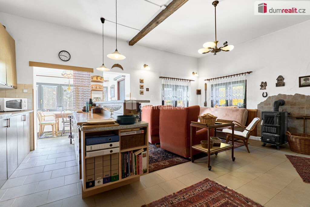 Samotný dům byl dostavěn v roce 2001 a zdá se, že ho čas šetřil. Jedná se o částečně podsklepený dvoupodlažní objekt určený k trvalému obývání. Přízemí nabízí prostornou halu s kuchyňským koutem, jídelnou a spížemi, hostinský pokoj a sociální zařízení. V patře najdete dvě prostorné ložnice s výstupem na terasu, obývací pokoj, kuchyň se spíží a další sociální zařízení.