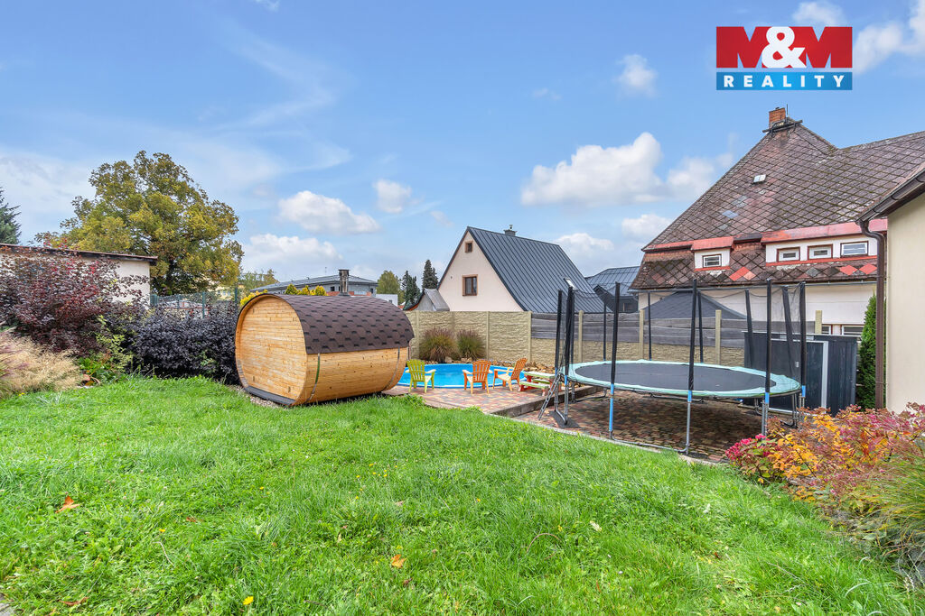 Nabízíme k prodeji jedinečný rodinný dům v centru obce Žacléř, který je aktuálně využíván jako penzion. V přízemí se nachází plně vybavená kuchyň propojená s obývacím pokojem, kde nechybí krbová kamna napojena na celý topný systém včetně ohřevu vody, dále ložnice a koupelna se sprchovým koutem a WC. V prvním patře najdete tři ložnice a koupelnu s vanou, sprchovým koutem, WC a bidetem. Podkroví je upraveno na pokoj se šesti lůžky. Sklep je využíván jako společenská místnost se saunou a sprchou. Na zahradě je k dispozici bazén, trampolína, sauna a pergola. Dům je ve velmi dobrém stavu. V okolí najdete široké možnosti pro volnočasové aktivity – od turistických tras a cyklostezek až po lyžařské areály Prkenný Důl a Bret. V obci se nachází veškerá občanská vybavenost. Přístup do obce v blízké budoucnosti zrychlí dálnice D11 s odhadovaným dokončením v roce 2028. Nemovitost je tedy ideální investice pro podnikání i rodinné bydlení. Pro domluvení prohlídky a další informace volejte makléře.